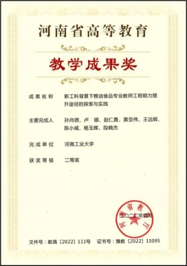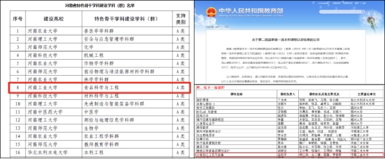 食品科学与工程学科获河南省特色骨干A类建设学科,2021年入选河南省“双一流”创建学科(全校唯一),获批近5亿元学科专项建设资金,2022年入选教育部“高校学科领域优先发展”规划,在2023年公布的教育部第五轮学科评估中获B+,跨2档为全省最好成绩,以该学科为主要支撑学科的农业科学学科ESI排名持续提升,进入全球前2.37‰。食品科学与工程专业顺利通过第3轮工程教育认证。牵头联合组建河南省实验室——“中原食品实验室”,进一步提升学科服务地方经济社会发展的能力。截止目前,学院共获国家级一流本科课程1门,省级一流本科课程9门,省级在线开放课程4门,校级在线开放课程7门。