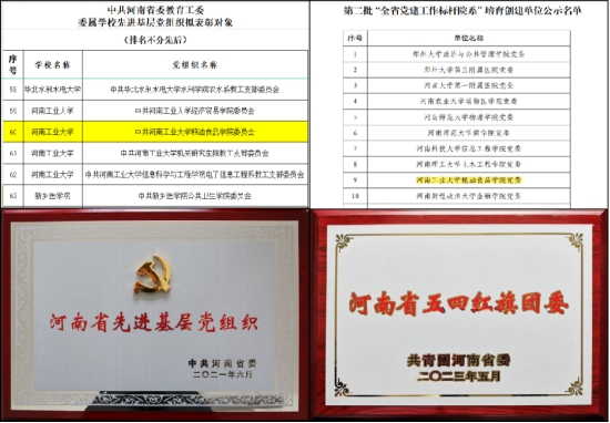 在新时代的征程中,学院党委以政治建设为统领,严格落实“第一议题”制度,凝聚学院高质量发展强大合力,引领学院事业在正确的航道上乘风破浪,稳健前行。学院党委先后被评为河南省委教育工委2022-2023年度先进基层党组织,2023年入选“全省党建工作标杆院系”培育创建单位,学院获评获评河南省“五四红旗团委”、校级“年度先进基层党委”“脱贫攻坚先进集体”以及“思想政治工作优秀品牌”“双带头人”教师党支部书记工作室等荣誉12项。