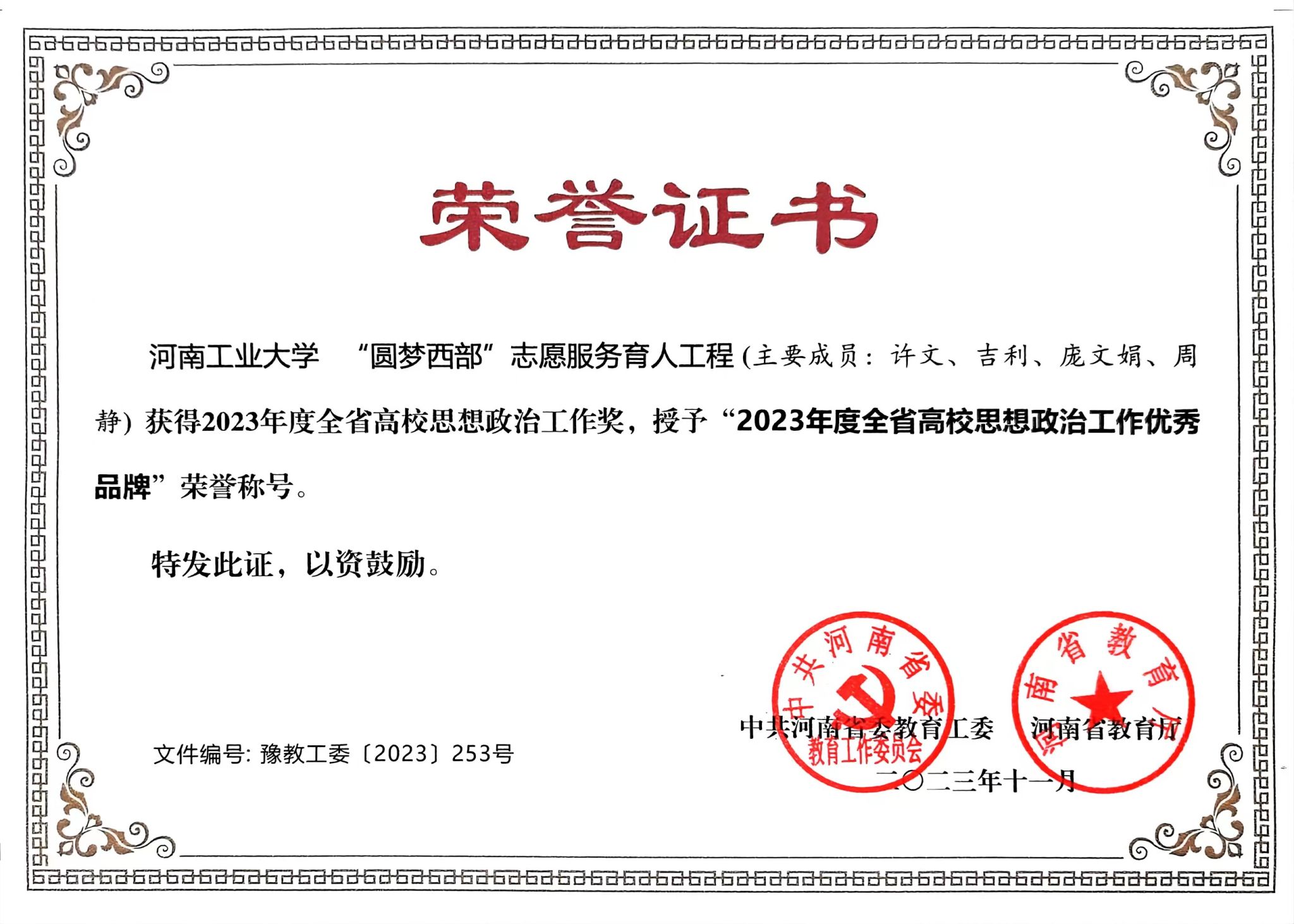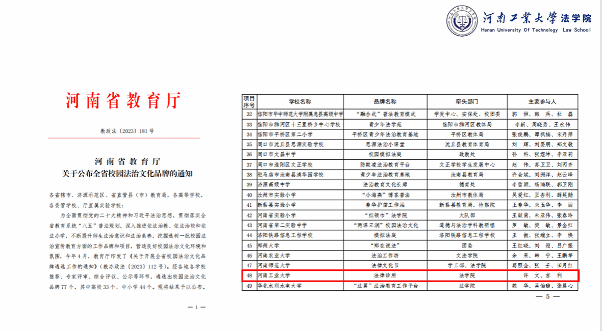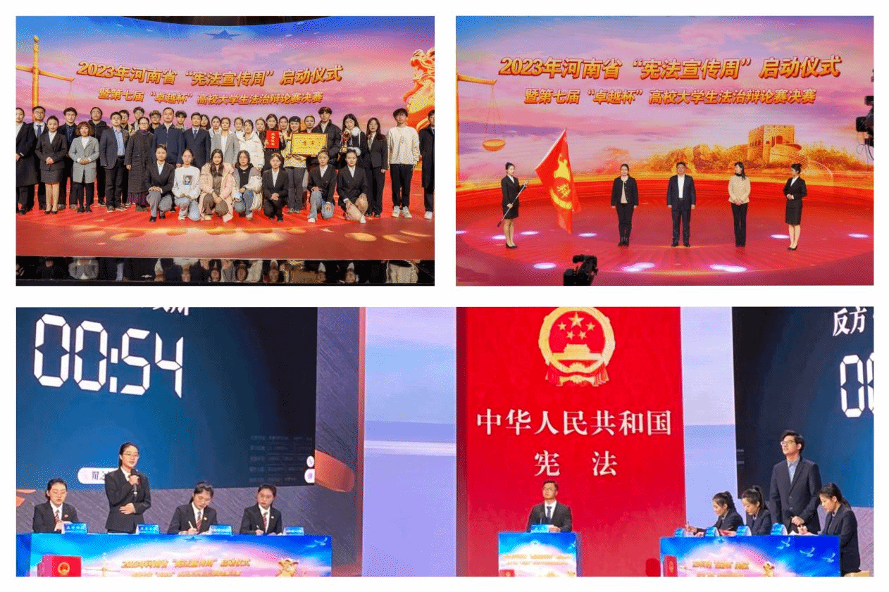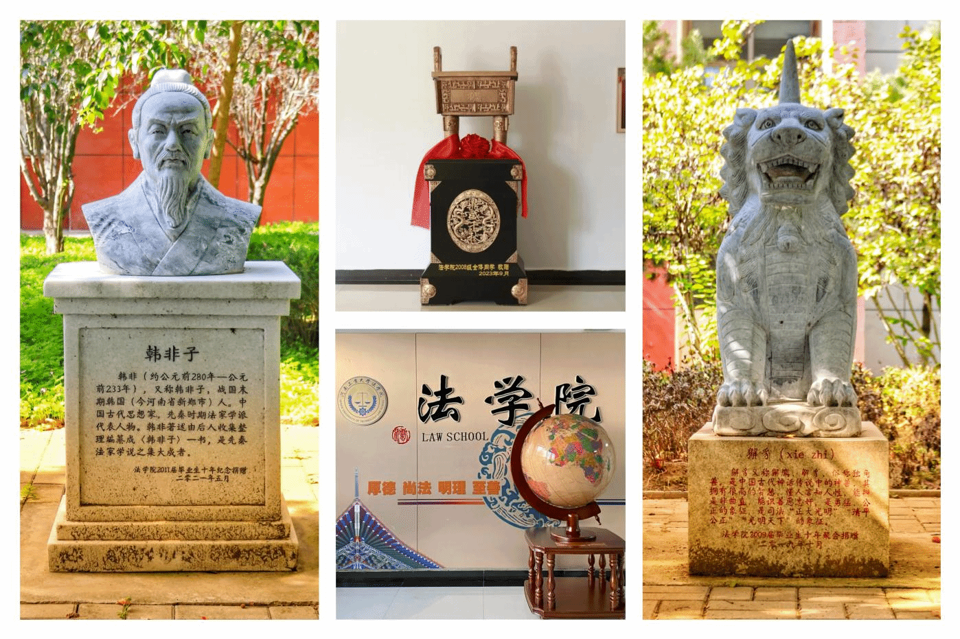 学院以“培养有情怀的法律人”为目标,引导学生厚植家国情怀,培养了一大批高素质卓越法治人才。每年有十分之一的毕业生参加“西部计划”,占全校参加“西部计划”总人数的四分之一,参加人数连续18年位居全校第一。“圆梦西部”志愿服务育人工程获批河南省高校思想政治工作优秀品牌。学院积极营造“以赛促学,以学促进”的良好氛围,充分结合学科特色,以“互联网+”、“挑战杯”、WTO等竞赛为抓手,鼓励学生培养创新精神,提升创新能力,近5年,创新创业类竞赛喜结硕果。学院高度重视校园法治文化建设,以3.15、4.15、12.4等重要节点为契机,举办法治教育宣传周、宪法宣传周等系列普法活动。承办河南省第七届“卓越杯”法治辩论赛,全省22所高校齐聚工大,决赛在河南广播电视台举行,提高了我院的知名度、美誉度和影响力。“法律诊所”获评河南省校园法治文化优秀品牌。五年来,学院接待了2005级、2006级、2007级、2008级等校友返校,校友向学院捐赠了獬豸雕像、韩非子塑像、法鼎等纪念性文化物品,提升了学院的文化品位。
