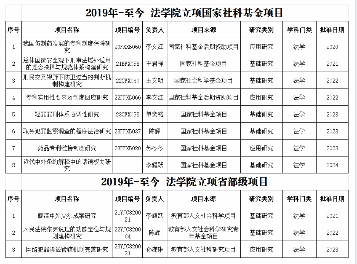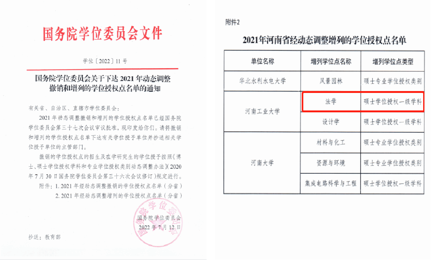 学院凝心聚力谋求发展,经过2020、2021年的建设,2022年7月,学院获批法学一级学科硕士点,实现了学科建设的重大突破。在知识产权专业硕士点申报上,提前布局、主动作为,现已经过国务院学位办公示,学院即将招收第一届知识产权专业硕士研究生,开创了法学院发展的新纪元。过去五年,学院完成了第九批省级重点学科验收,获批了新一轮省级重点学科。学科建设归根到底要靠人才,2020年以来,学院新进博士16人、特聘教授1人,改善了学院的师资结构,奠定了发展的基础;共获批国家级项目10项,实现了国家级项目的历史性突破。近五年新进青年教师,一半以上的老师拿到了国家级项目。过去五年,共立项省部级、厅局级项目62项,到账科研经费311.7万元,获省政府发展研究奖1项,河南省高校哲学社会科学优秀成果奖2项。