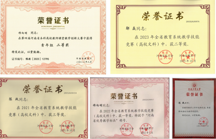 以本科教育教学审核性评估为主线,加强制度建设。修订人才培养方案,完善课程体系,强化“法学+粮食+知识产权”专业特色。组织教师参加教学竞赛,利用模拟法庭、校级研究中心、法律诊所、校外实践基地、学科竞赛等五类实践教学平台,切实提升实践教学能力。获批河南省高等教育教学改革研究与实践项目3项、省本科高校研究性教学项目1项,省教学技能竞赛一等奖1项、二等奖2项,省本科高校教师课堂教学创新大赛一等奖1项、二等奖1项。获批省一流课程3门,省级精品课程1门。获评校长教学质量奖2人,“河南省教学标兵”1人,“河南省优秀教师”1人。获批教育部产学合作协同育人项目1项。完成蒙古国检察官研修班培训,获批河南省涉外法治人才协同培养创新基地,建立校外实习基地20余家。法学辅修人数逐年递增,2023年报名人数达到180人。