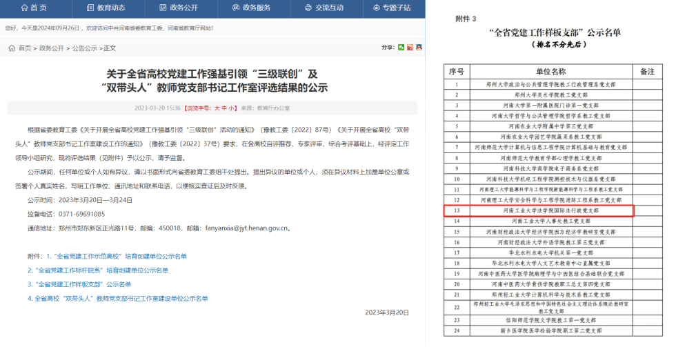 在学院发展非常艰难的情况下,先后完成了法学院文化长廊、开放书屋、党员之家建设,教授工作室、教研室、模拟法庭提升改造等工作,组织开展了形式多样的文体活动,凝聚出真抓实干、各尽其能的干事创业氛围。在新冠肺炎疫情期间、“7·20”洪灾等关键节点经受住了考验。国际法行政党支部获评河南省高校样板党支部。