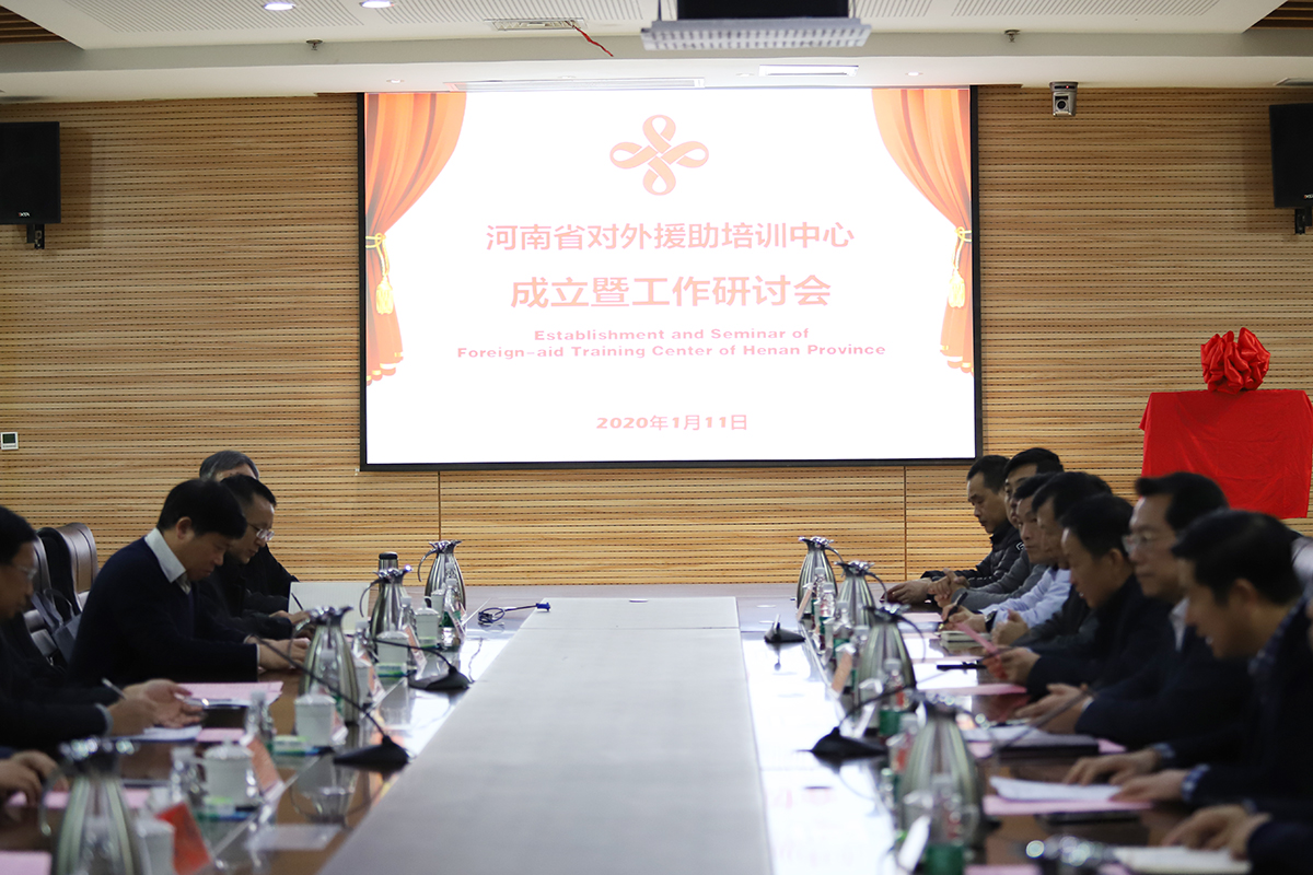 1月11日上午,“河南省对外援助培训中心”成立暨揭牌仪式在我校学术报告中心D204举办,河南省委高校工委专职委员高治军、中共河南省委外事工作委员会办公室副主任王自文、河南省商务厅对外投资和经贸合作处副处长杨军岐、河南省教育厅对外合作与交流处处长徐恒振、中共河南省委外事工作委员会对外发展合作处处长闫景伟、河南省农村农业厅对外经济联络处副处长曾显奇,河南省体育局对外联络处燕伟、郑州市武术协会主席肖存兴、校长卞科、副校长朱文学以及我校各相关部门负责人参加了成立仪式。