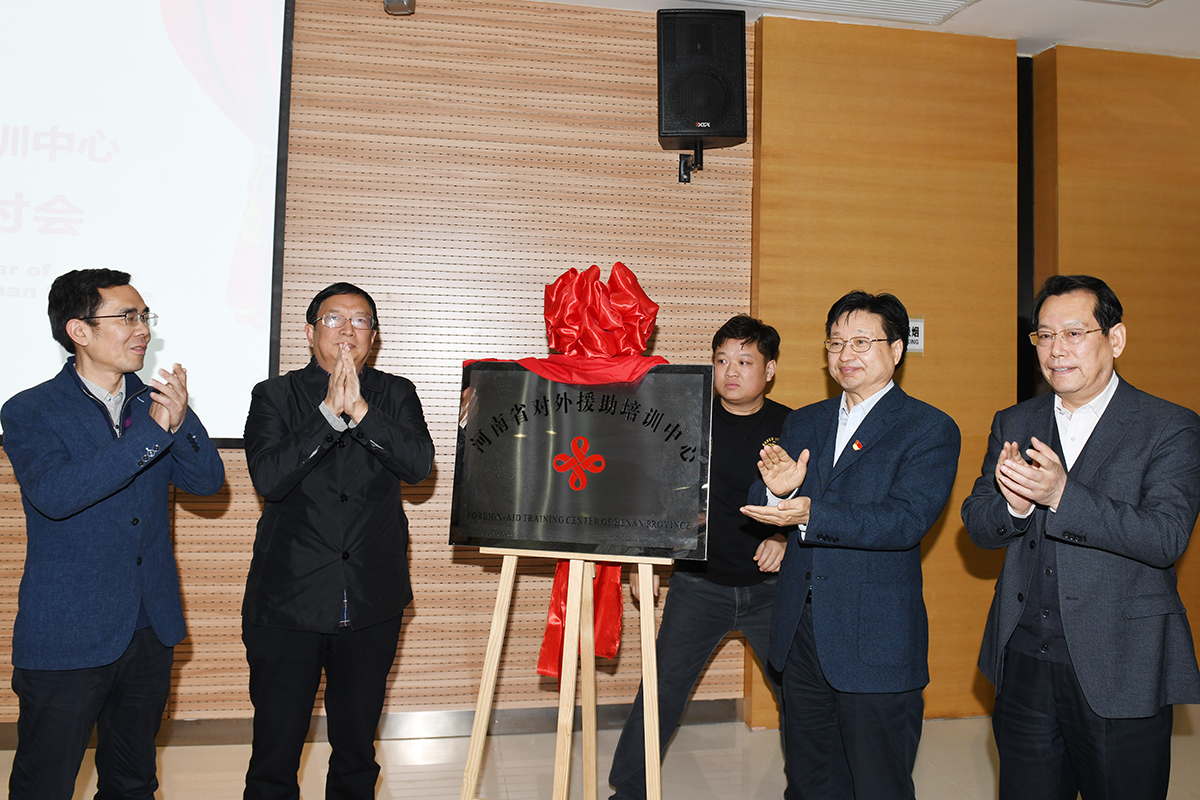 在与会领导与嘉宾的共同见证下,高治军、王自文、杨军岐、卞科共同为“河南省对外援助培训中心”揭牌,开启了河南省援外培训新的篇章。