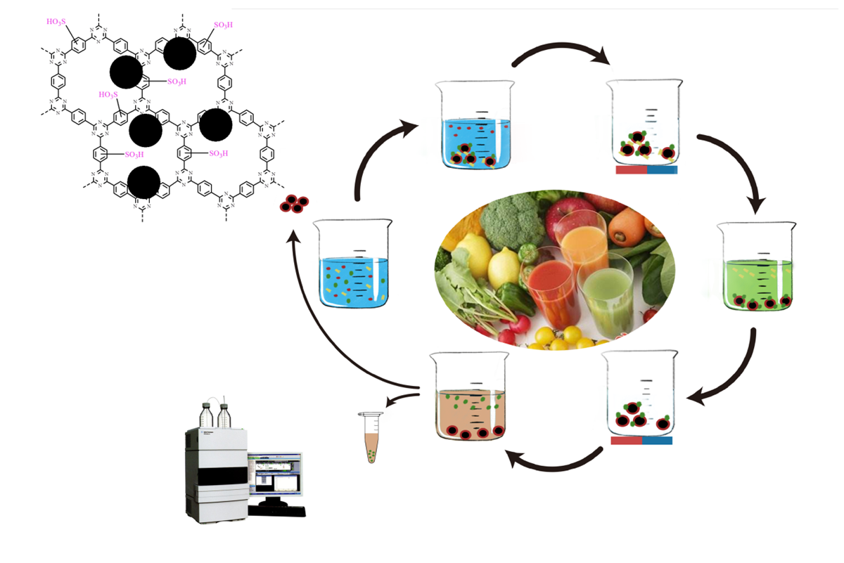 赵文杰博士与郑州烟草研究院谢复炜研究员合作,制备了具有亲水亲油平衡/阳离子交换双保留机理的磁性多孔材料,将该材料用作固相萃取吸附剂,结合高效液相色谱-质谱联用分析技术,建立了吸烟人群尿液中杂环胺类化合物和食品中苯并咪唑类农药残留的测定新方法。该研究工作部分内容以Evaluation of sulfonic acid functionalized covalent triazine framework as a hydrophilic-lipophilic balance/cation-exchange mixed-mode sorbent for extraction of benzimidazole fungicides in vegetables, fruits and juices(DOI: 10.1016/j.chroma.2019.460847)为题发表在色谱领域权威期刊Journal of Chromatography A上。
