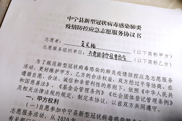在我志愿服务的第七天,我们县里确诊了首例病例,很多志愿者开始退缩,害怕自己在志愿服务的过程中接触到了新冠肺炎的病例,所以在这一天停止了志愿服务,但是我认为,疫情不可怕,只要我们齐心协力,一定能打好这次防疫战,如果所有人都因为恐惧退缩了,那么还有谁来保卫亿万的人民群众?所以我向团县委作出了承诺,在乐鱼online(中国)正式开学前的这段时间里,我会每天积极参加志愿服务,为这次防疫狙击战贡献自己的一份绵薄之力。