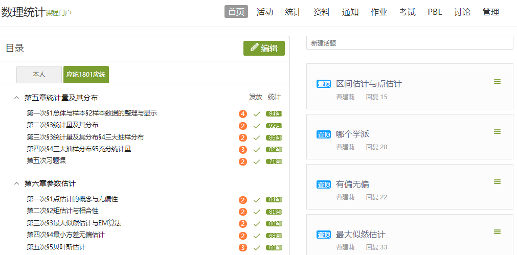 本学期承担课程:数理统计