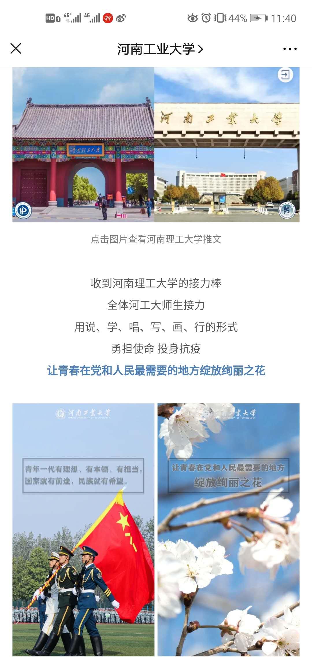 一场关于学习贯彻习近平总书记重要回信精神的接龙活动在高校间开展。工大师生认真学习领会习近平总书记重要回信精神,在收到接力棒以后,广泛发动,深入宣传,并用说、学、唱、写、画、行的形式通过微信、微信等新媒体平台及时进行教育引导,迅速将学习宣传活动推向高潮,使学习回信精神往深里走,往心里走,往实里走,内化为工大师生的自觉行动。