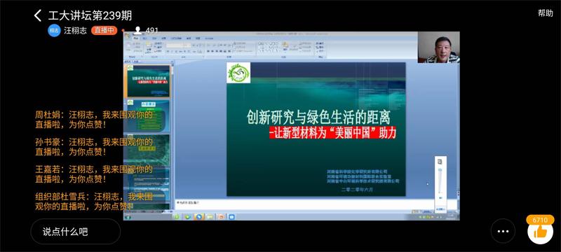 “工大讲坛”搭建高层次专家平台,筑牢绿色教育基础。校团委联合马克思主义学院及环境工程学院举办两期专题讲座,特邀河南省委党校田文富教授、河南省科学院赵亮研究员做客工大讲坛,分别从人文与科技视角为全校师生诠释了“绿色治理的中国实践与中国经验”及“创新研究与绿色生活的距离——让新型材料为美丽中国助力”。田教授结合中国近年来环境治理的成功案例介绍了绿色治理的中国实践,总结了我国在绿色治理上取得的宝贵经验,并指出习近平生态文明思想是生态文明建设和美丽中国的根本遵循。作为全国优秀科技工作者的赵研究员重点从技术层面阐述了新型材料吸附有害气体实现空气净化的进展与成效,并强调污染控制技术一定要与时俱进。