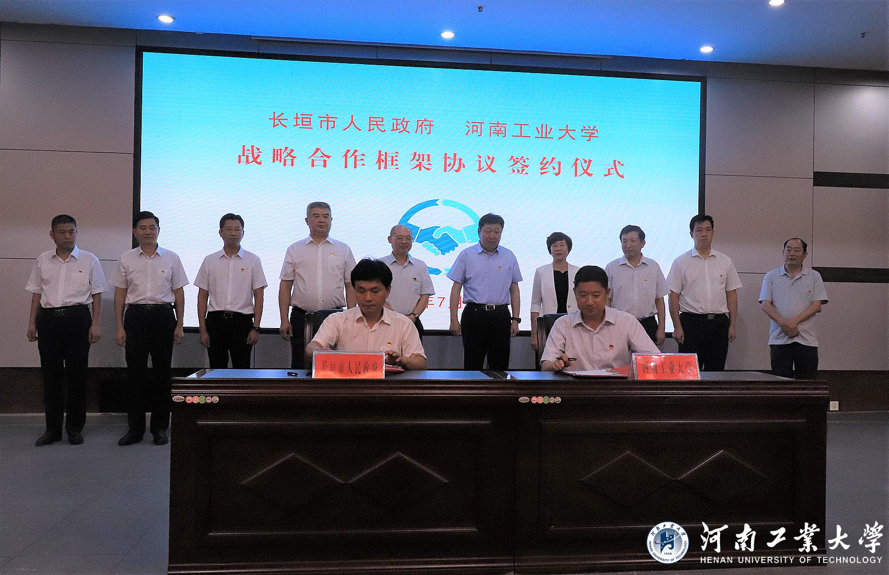 7月16日,在长垣市政府综合办公楼,河南工业大学与长垣市人民政府“喜结连理”,举行战略合作框架协议签约仪式。乐鱼online(中国)党委书记张元、副书记毛彦琴、副校长李焕锋,以及党委办公室、组织部、教务处、科技处、粮食创新发展中心、社会合作与校友办等有关部门领导出席签约仪式,长垣市领导赵军伟、张彤、刘文君、卢立松出席仪式。银河集团董事长范国栋、长垣烹饪职业技术学院院长王金台,相关职能部门主要负责同志和各乡镇人民政府、街道办事处负责同志及烹饪学院班子成员参加签约仪式。