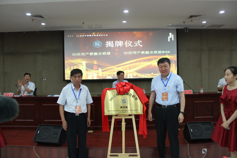 省工信厅信息化和软件服务业处刘辉处长宣读《河南省工信厅关于同意作为5G应用产教融合联盟指导单位的函》;河南工业大学信息科学与工程学院秦瑶副院长向大会汇报了5G应用产教融合联盟的筹备情况;河南省教育厅科技与信息化处杨学勇处长对5G应用产教融合的联盟未来发展提出建议和要求;河南省工业和信息化厅一级巡视员聂春山同志对5G应用产教融合联盟的成立做出高度肯定和殷切期望,并为5G应用产教融合联盟揭牌。