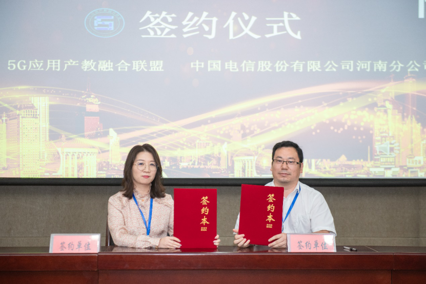 成立大会上,5G应用产教融合联盟还与中国电信股份有限公司河南分公司、中国移动通信集团河南有限公司许昌分公司、新华三大数据技术有限公司、郑州海康威视数字技术有限公司、中科院计算所大数据研究院、上海大唐移动通信设备有限公司、中兴教育管理有限公司七家单位举行了集中签约。