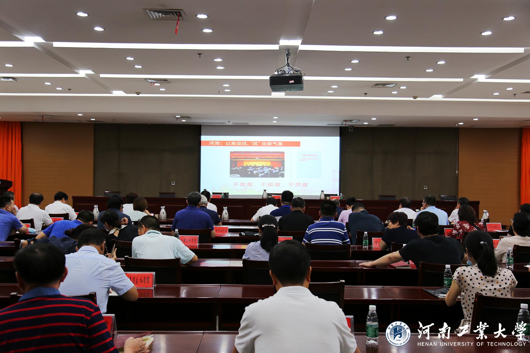 会议开始之前,全体与会人员共同观看了校纪委(监察专员办公室)制作的以案促改工作宣传片。