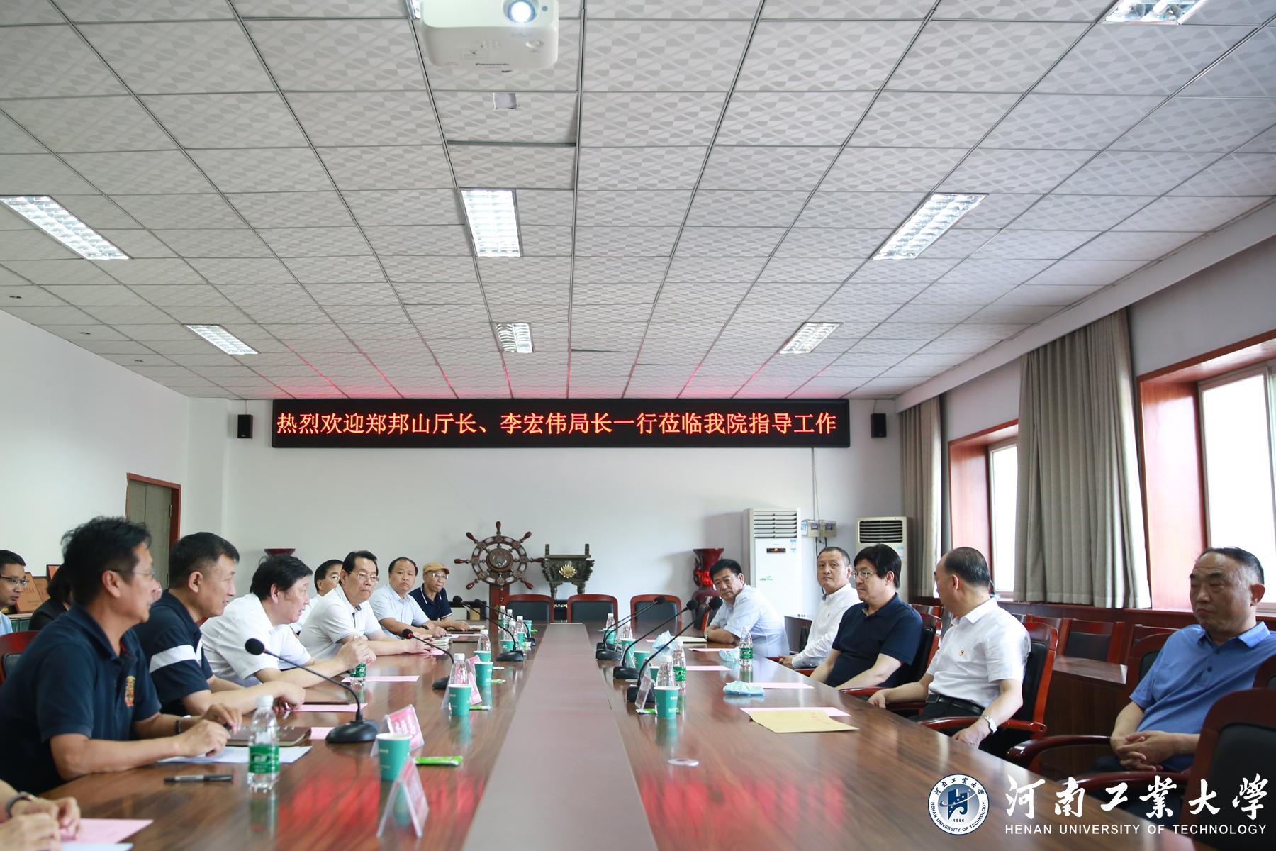 9月17日下午,河南省教育厅党组书记、厅长郑邦山,省广播电视局党组书记、局长李宏伟,省广播电视局党组成员、副局长刘英,省教育厅高教处处长张水潮,省广播电视局从业人员服务处处长蔡振林一行莅临我校新闻与传播学院调研指导工作。校党委书记张元、校长卞科及相关职能部门负责人陪同调研,新闻与传播学院领导班子、系主任出席会议。