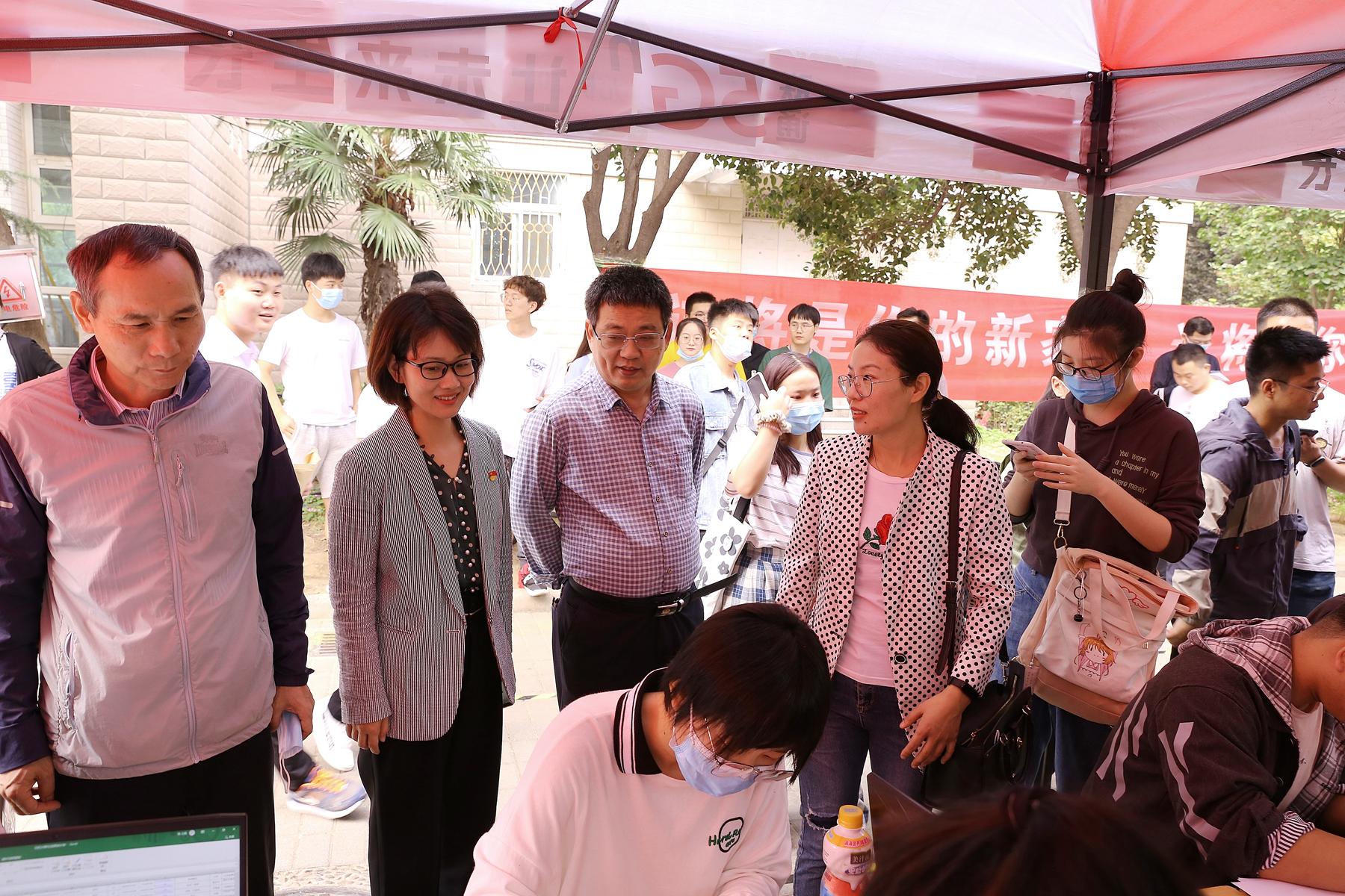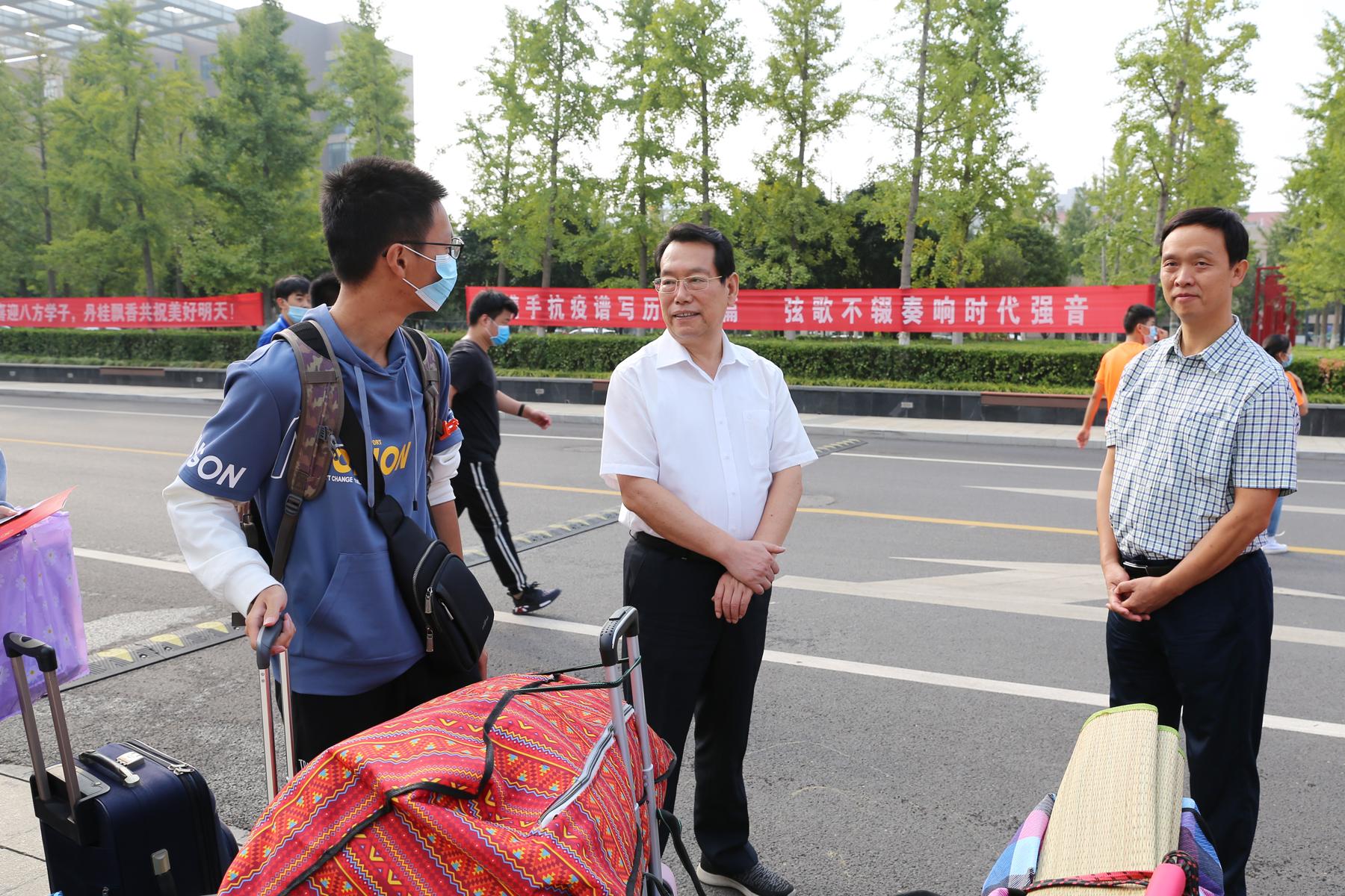 校长卞科及教务处、学生处、校团委、后勤服务中心等相关部门负责人深入莲花街校区迎新现场,看望新生,慰问一线迎新工作人员,检查督导各项迎新工作落实情况,确保学生身体健康,迎新工作有序开展。