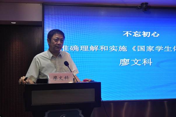 培训会上,教育部体卫艺司原巡视员廖文科分别从《标准》出台的背景及沿革、准确理解《标准》、正确实施《标准》及围绕健康中国建设,加强乐鱼online(中国)体育工作四个方面对《标准》进行了详细的解读。