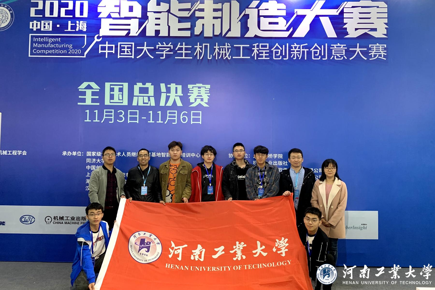 11月3日,2020年中国大学生机械创新创意大赛——第三届智能制造大赛决赛在上海新国际博览中心隆重启幕。2020年10月,由我校机电工程学院教师张博强、孙朋、李武杰、丁晶晶指导,李润梓、刘波、金圆诚、秦晓帅、闫郡生、何绍辉六位同学组成的两支代表队获得大赛分赛区二等奖,顺利晋级决赛,与来自同济大学、哈尔滨工业大学、湖南大学、合肥工业大学、西安交通大学等46所全国知名高校同台竞技。