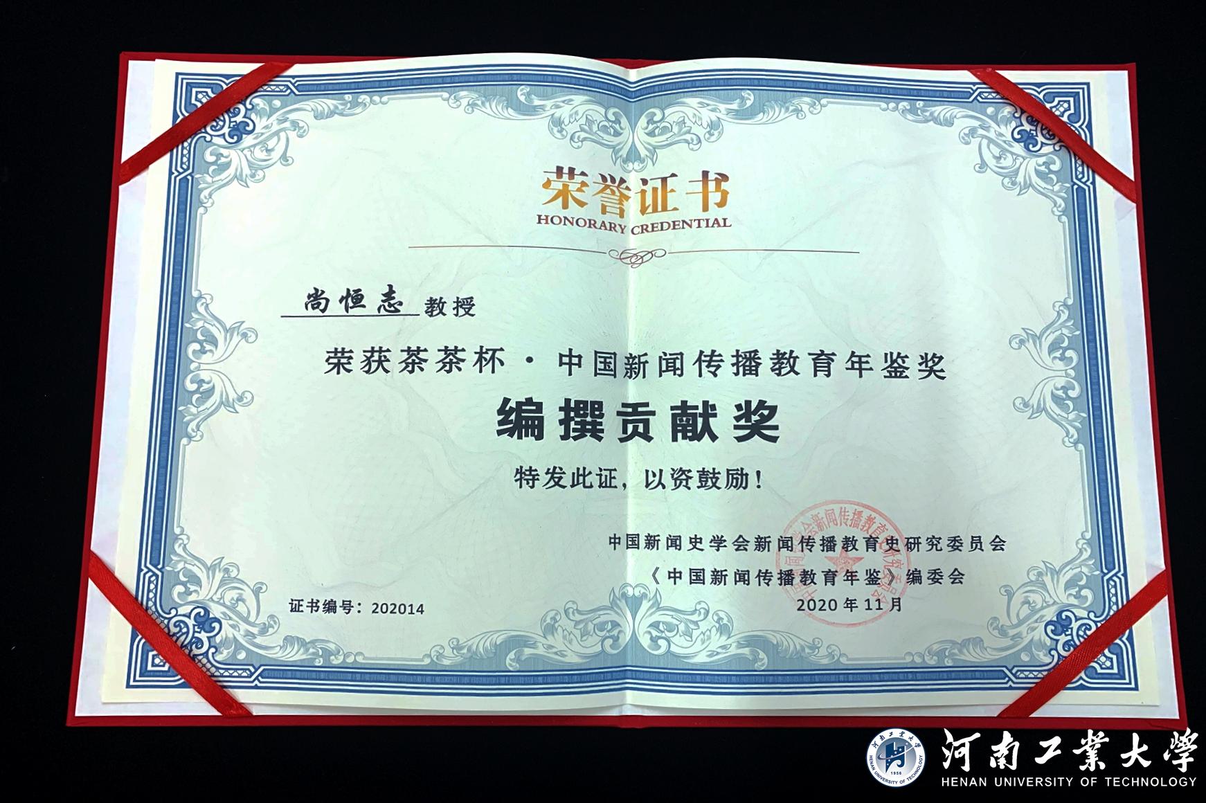 我校新闻与传播学院教授尚恒志常年致力于新闻传播教育教学及学院的管理工作,2014年以来,连续担任中国新闻传播教育年鉴编委和特约编辑,并担任撰稿人。鉴于其对中国新闻传播教育年鉴的贡献,此次会议上中国新闻史学会新闻传播教育史研究委员会、中国新闻传播教育年鉴编辑委员会授予尚恒志教授中国新闻传播教育年鉴奖:编撰贡献奖。这是对尚恒志教授本人的认可,更是对我校新闻传播教育的认可。