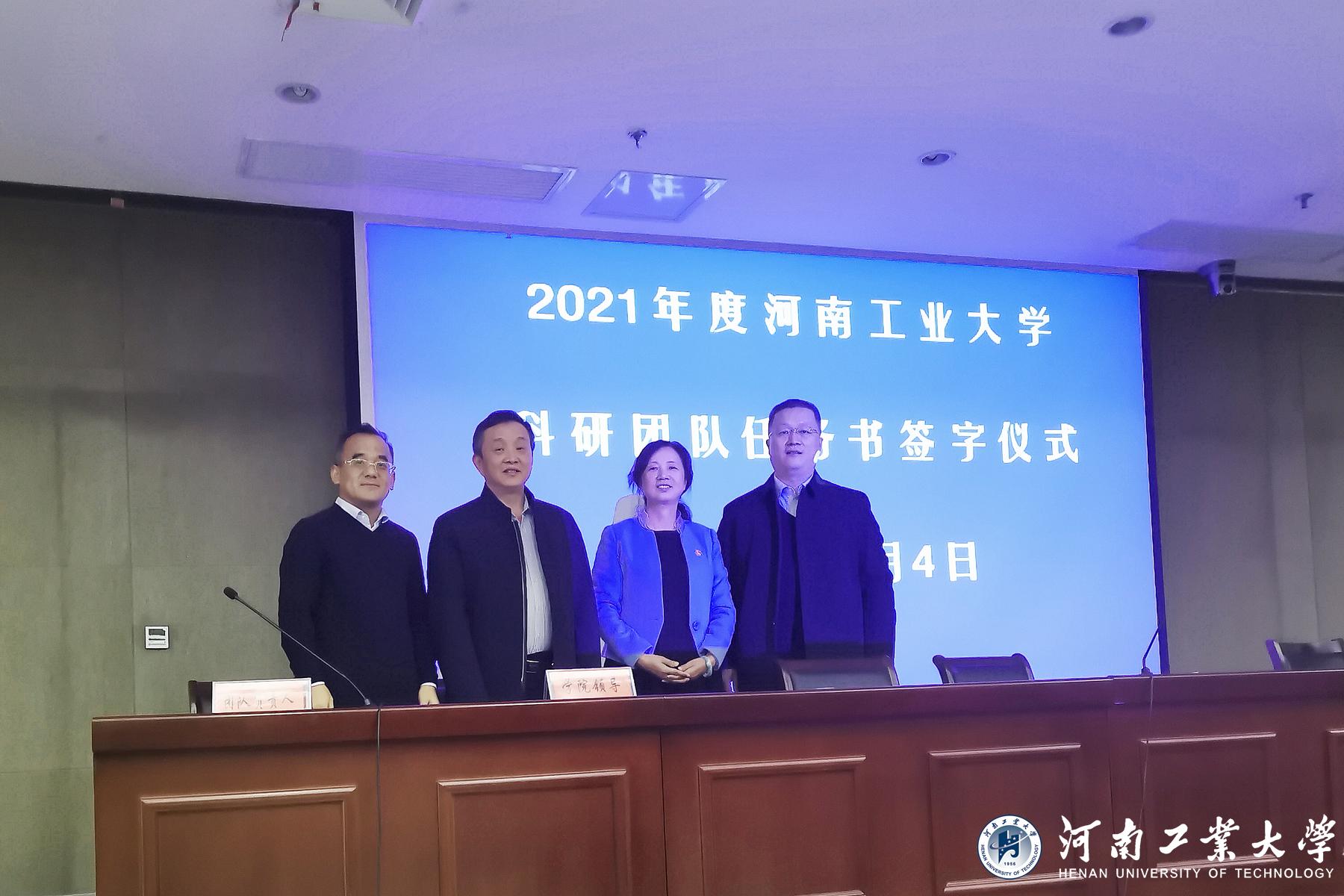 王晓曦处长首先介绍了校科研创新基金(团队支持计划)设立的宗旨及任务书签订的意义。校科研创新基金以科研团队为资助对象,通过实施科研团队建设改革我校科研组织模式,激发科研队伍活力。任务签字为科研团队明确了工作方向和目标,希望各团队认真开展研究工作,保证完成预定任务。随后,举行了隆重的创新基金任务书签字仪式。由科技处处长王晓曦、社会科学处处长于建华代表校方,学院院长代表院方,团队负责人代表团队共同在任务上签字,意味着乐鱼online(中国)、学院和团队负责人为承担我校首批科研团队建设任务许下了庄重承诺。