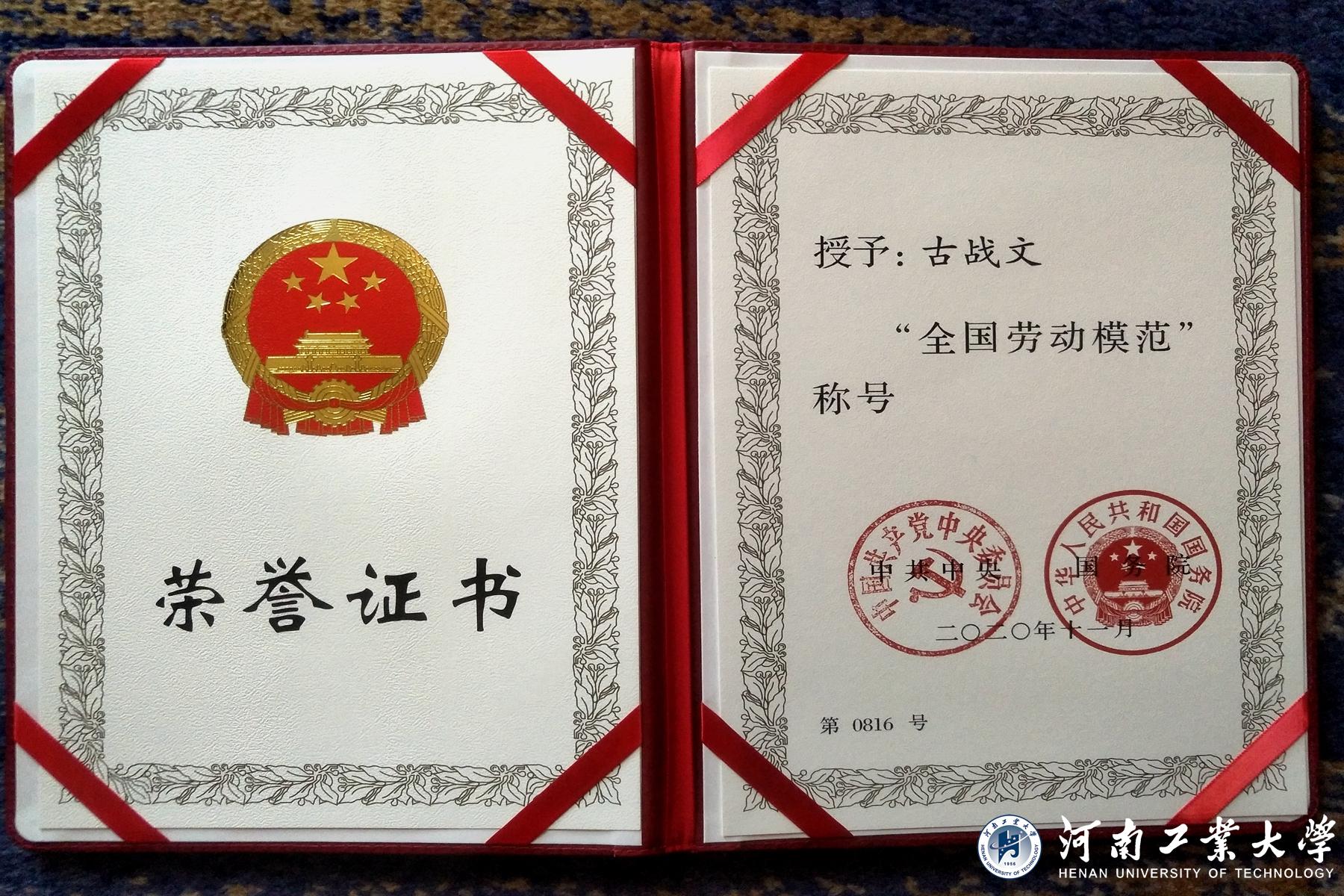 全国劳动模范和先进工作者每五年评选一次,是党中央、国务院对全国各行各业、各条战线上的杰出劳动者的最高褒奖与鼓励,是广大劳动者的最高荣誉。古战文是奋战在各条战线上广大河南工业大乐鱼online(中国)友的优秀代表,更是材料科学与工程学院的骄傲与自豪。