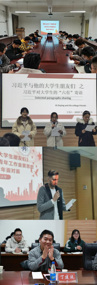 正如习近平总书记所说:“国之交在于民相亲,民之亲在于心相通”。随着中国特色大国外交徐徐铺展,中国在国际社会上的地位日益提升。塑造负责任大国形象,向世界更好地展示中国理念成为每位新时代青年义不容辞的时代责任。以向国际友人讲好中国故事为目的,在英文分享环节,外语学院和校“英语协会”的同学代表通过精彩段落分享、心得感悟交流、朗诵等形式,同在校国际留学生朋友们分享习近平总书记对大学生的“六有”寄语、习近平总书记引领大学生返乡发展、与习近平总书记谈心中的科创强国思想等书中主要思想和内容,为世界读懂中国贡献青春力量。书籍也引起了国际青年读者的共鸣,来自三个国家的河南工业大学外籍学生通过片段朗读和读书分享交流从习近平总书记与青年朋友们生动故事中得到的真切感悟。