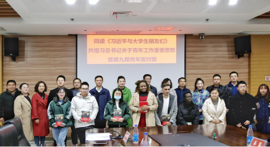 11月19日,由中国青年出版社出版的《习近平与大学生朋友们》在全国发行。我校团学系统第一时间传达学习、第一时间组织实施,开展“同读《习近平与大学生朋友们》,共悟习近平总书记关于青年工作重要思想暨第九期青年面对面”等系列活动,在校内外引起强烈反响。通过青马社团领学、新媒体作品设计、英文分享、中外交流、创意展示等系列活动,青年学生与教师共悟习近平总书记关于青年工作重要思想。党委宣传部、学工部、统战部、校团委、国际交流与合作处、图书馆、外语学院及马克思主义学院等部门负责同志及师生代表出席活动。活动受到共青团中央等广泛关注,中华全国学联、河南共青团官网、《今日头条》等多家媒体对此进行报道。