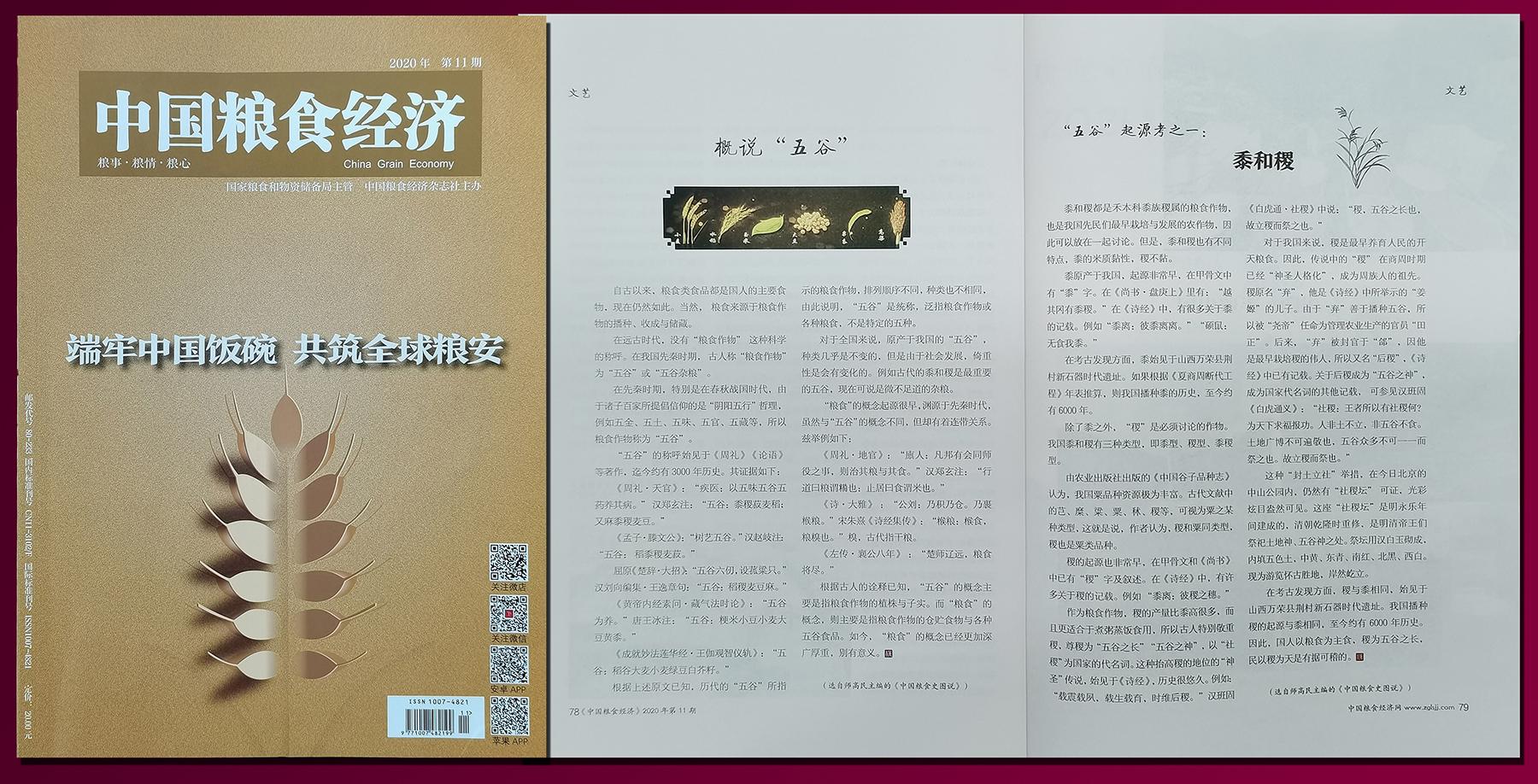 《中国粮食经济》2020年第11期转载《中国粮食史图说》
