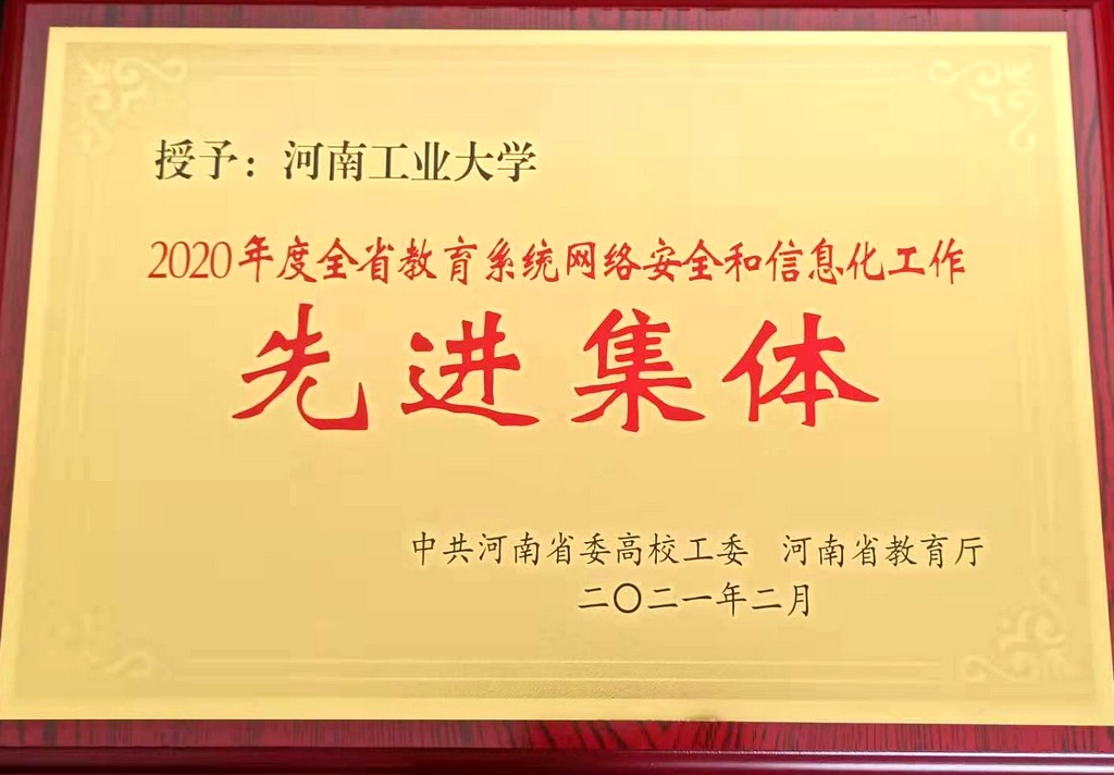 根据中共河南省委高校工委、河南省教育厅《关于表彰2020年度全省教育系统网络安全和信息化工作先进集体先进个人的决定》(教科技〔2021〕57号),我校被评为全省教育系统网络安全和信息化工作先进集体,信息化管理中心张强、谭玉波被评为先进个人。