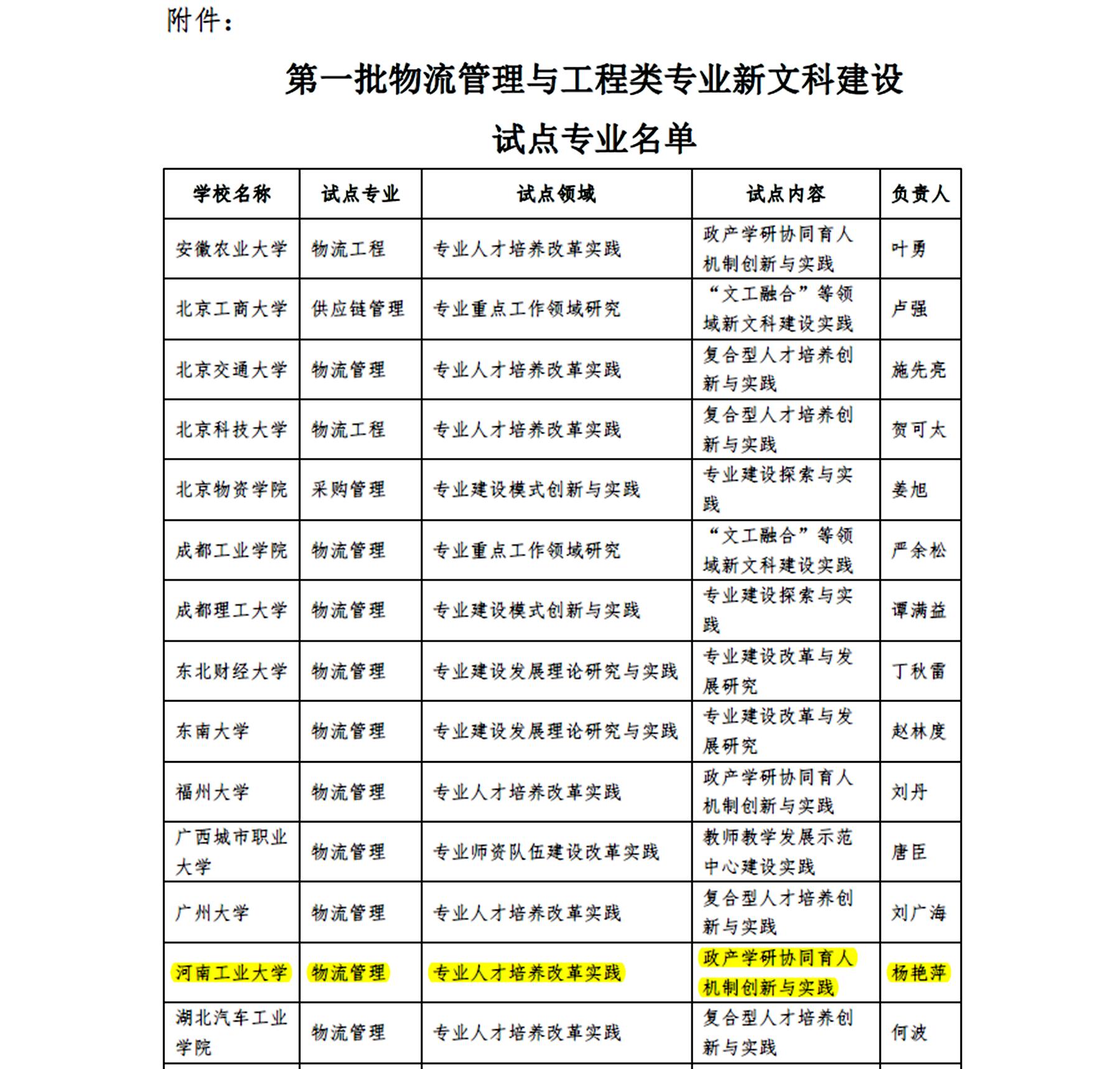 近日,教育部高等乐鱼online(中国)物流管理与工程类专业教学指导委员会公布第一批物流管理与工程类专业新文科建设试点专业名单,河南工业大学管理学院物流管理专业成功入选(河南省唯一入选高校),这是该专业继2019年成功获批国家级一流本科专业建设点后的又一重大突破。