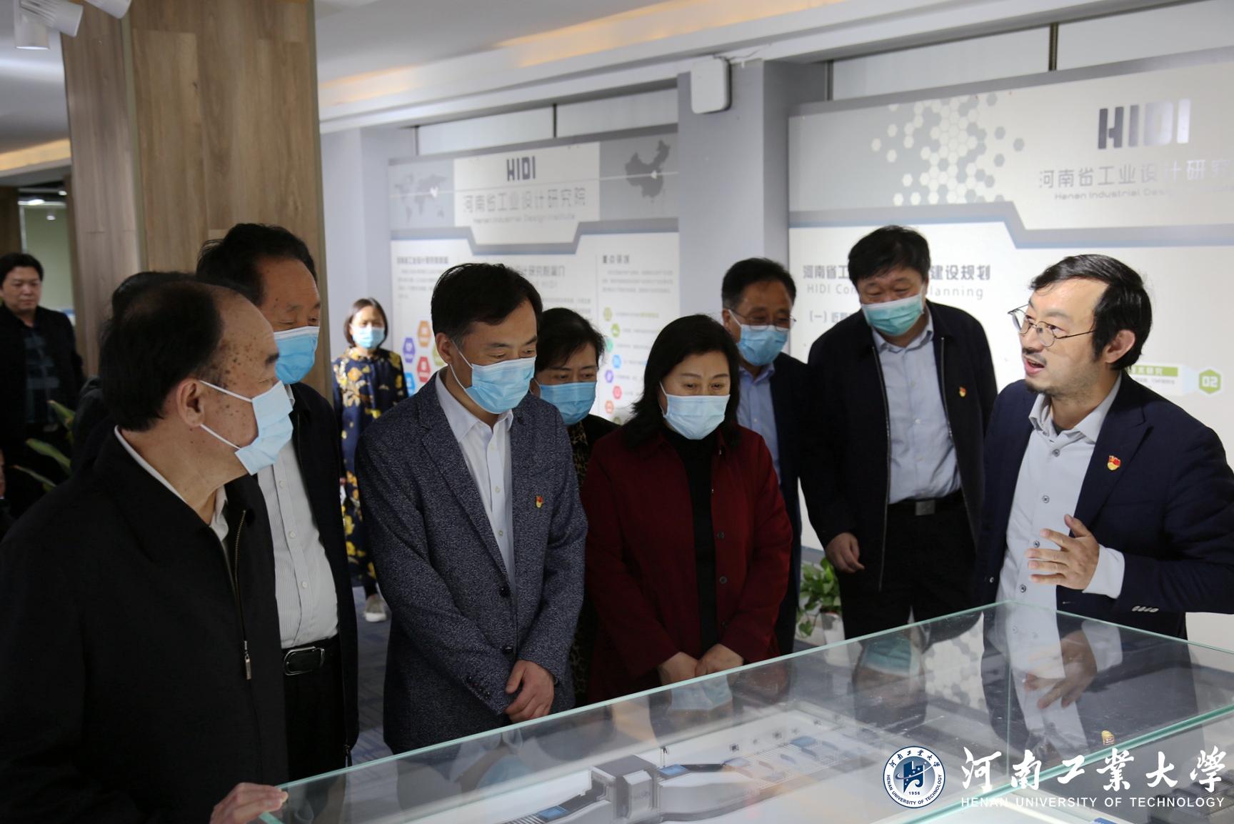 检查组一行在设计艺术学院察看了设计扶贫和工业设计强省情况。检查组首先参观了工业设计团队的宇通房车,在学院大厅参观了设计作品展,对自主设计的新能源电动倒三轮车的结构、生产、制造、销售等进行了详细了解,在导师工作室,他们表示对创新的教学模式非常感兴趣;在河南省工业设计研究院他们参观了服务地方经济的设计扶贫“光山十宝”和宇通动物园观光车、机场智能安检设备等工业设计成果,座谈交流时检查组肯定了设计艺术学院先进的教学模式改革和丰硕的设计成果,是河南工业大学高水平的体现。