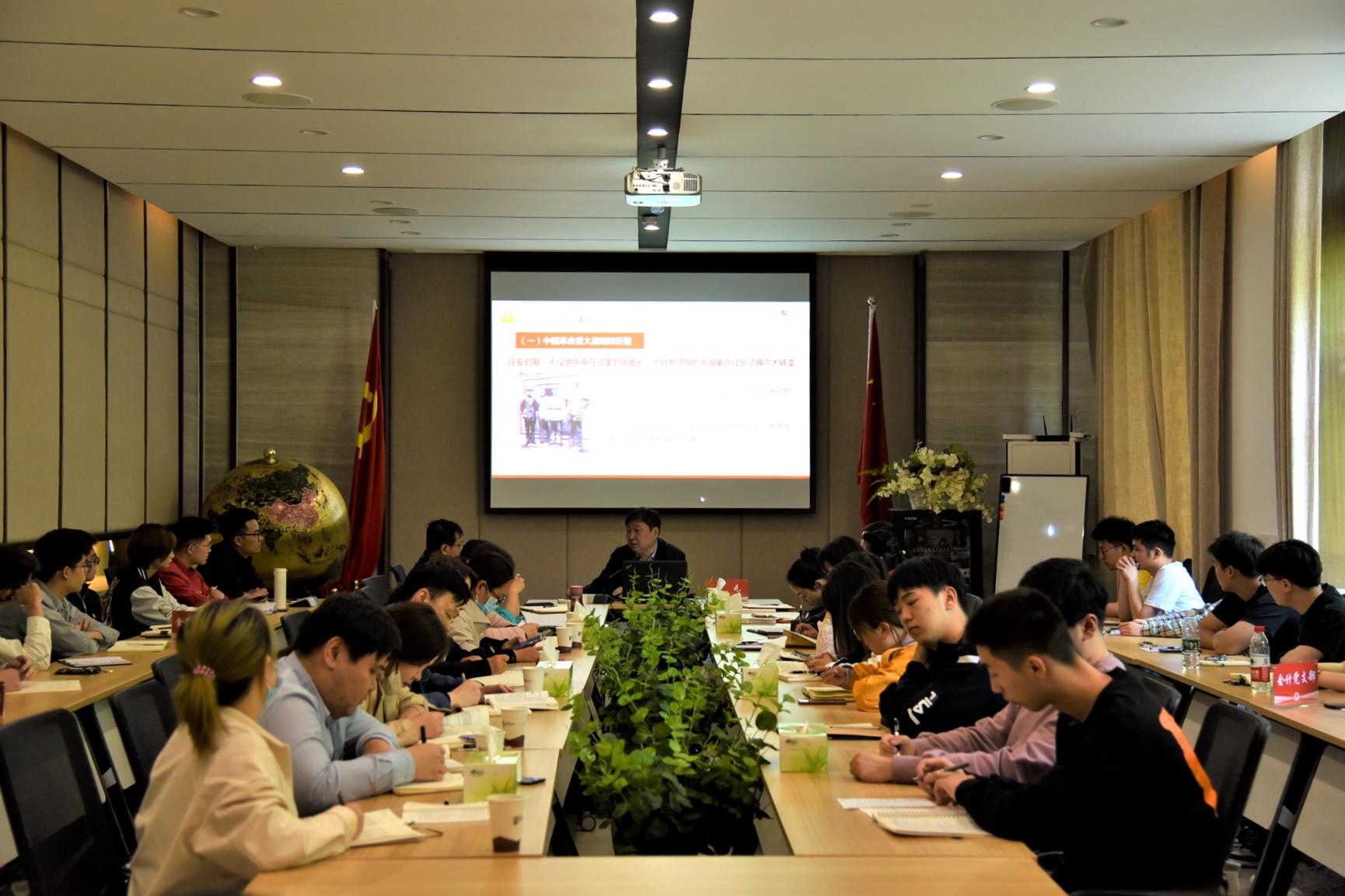 4月28日,校党委书记张元莅临国际教育学院调研指导工作,并以“延安精神垂青史,实事求是拓新程”为主题在6254会议室讲授专题党课。学院全体教工和学生党员代表参加了此次会议,院党委书记刘国仕主持。