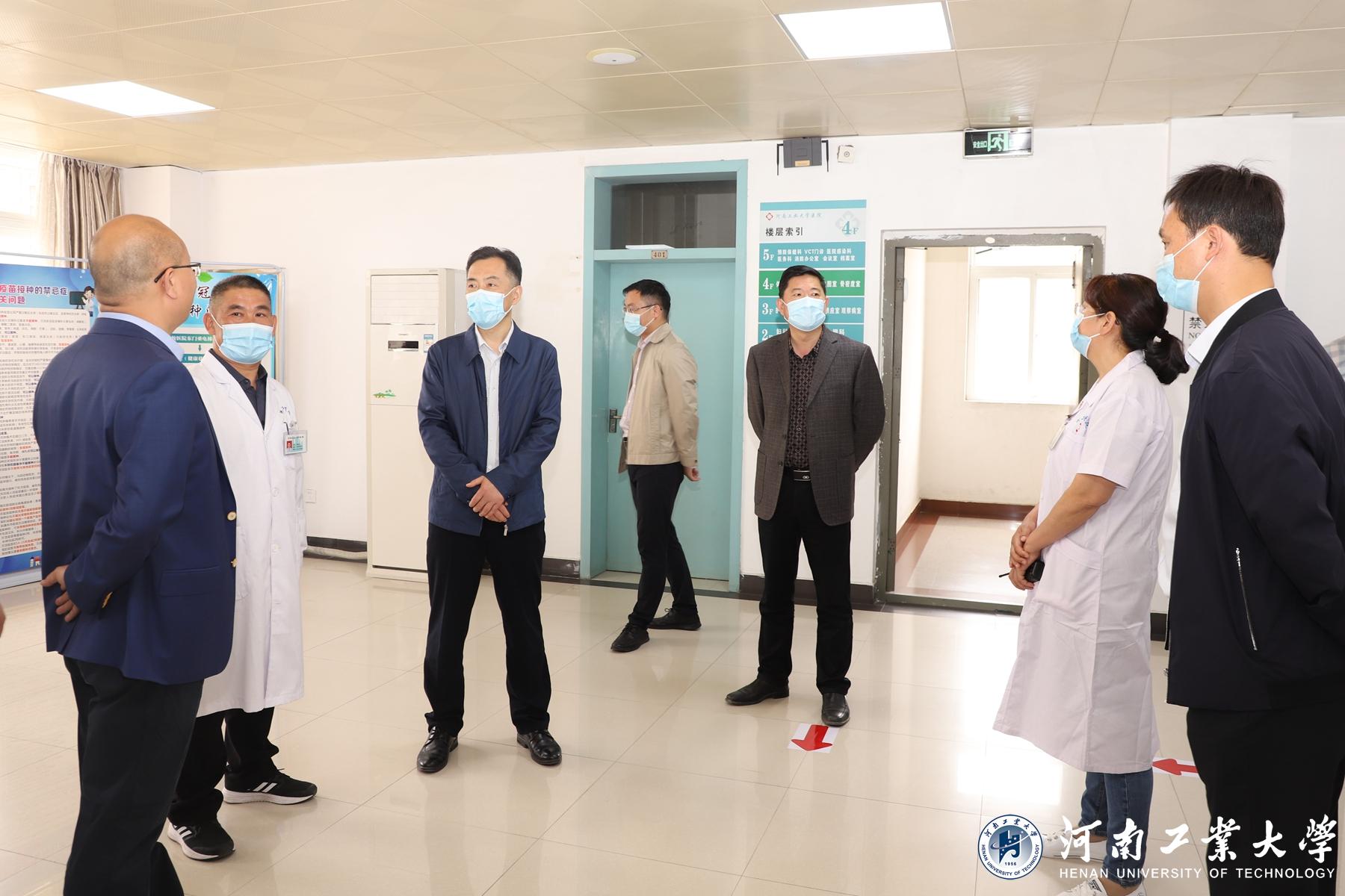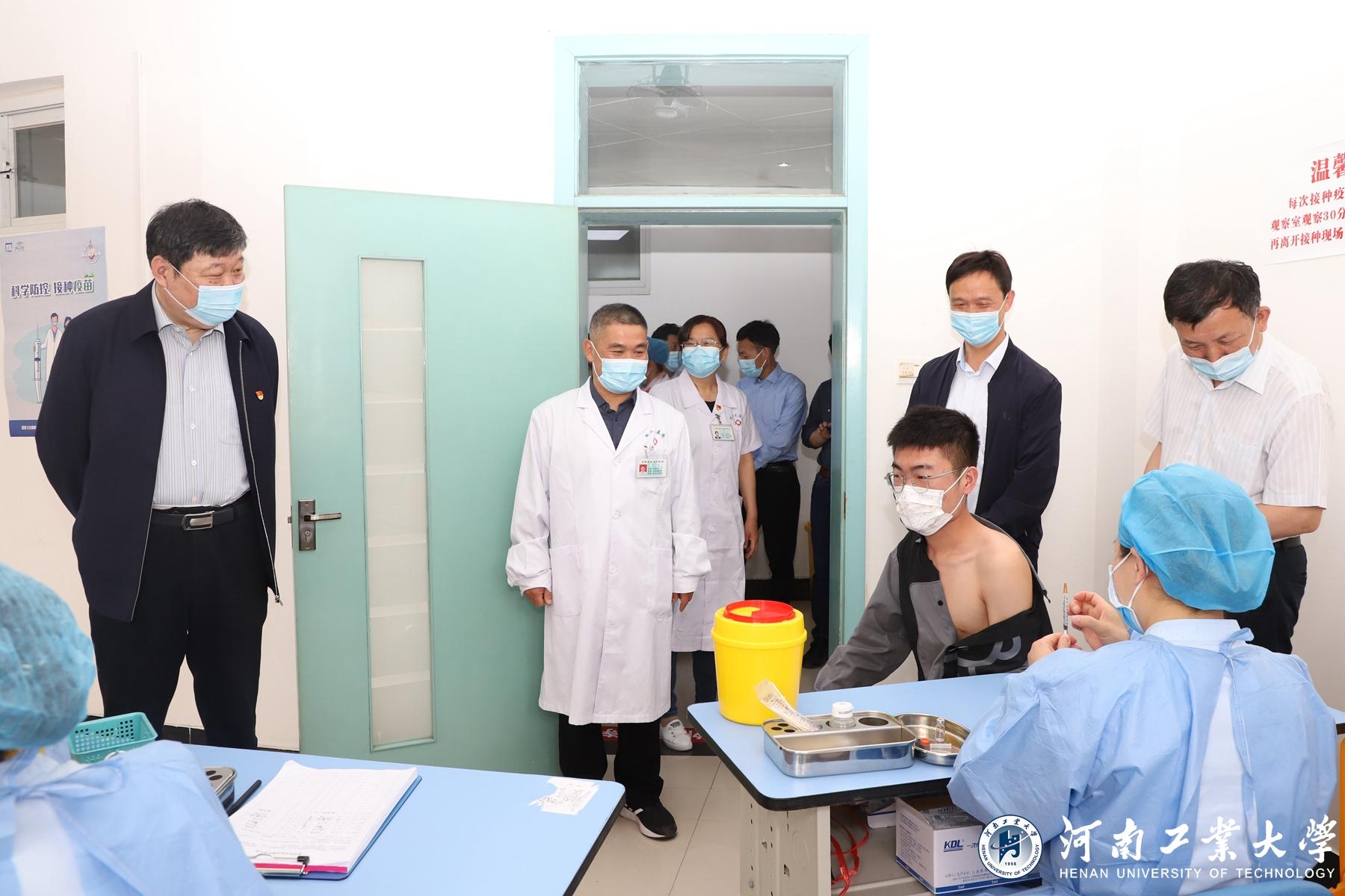 为积极推进全校新冠疫苗免疫接种工作,切实构筑免疫屏障,5月6日,校领导张元、李成伟、李焕锋在党办、校办、学生处负责同志陪同下,到校医院新冠疫苗集中接种点检查指导疫苗接种工作,看望和慰问接种疫苗的学生和工作人员。