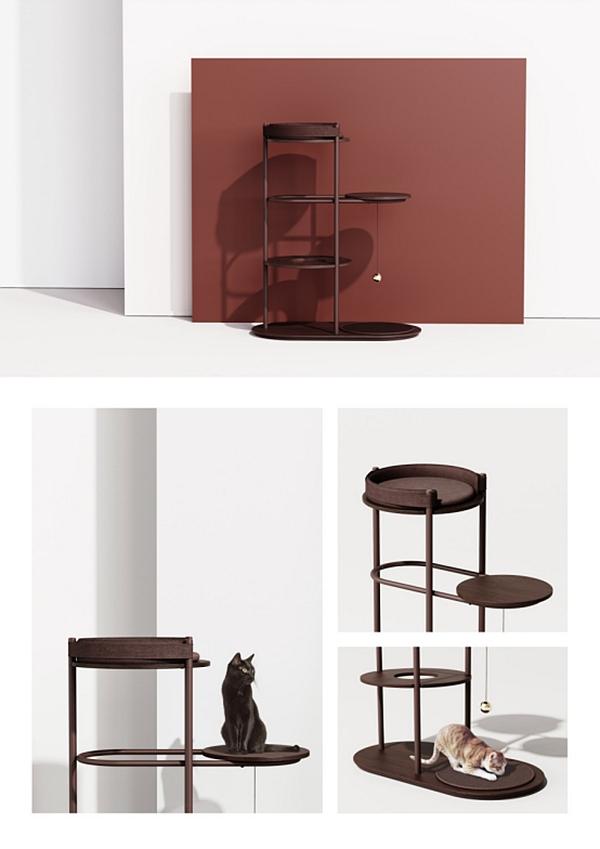 吴琦同学的作品《CAT CLIMBING TOWER》旨在搭建宠物和人类之间共享的空间,寻找宠物习性与功能需求之间的完美和谐。作品将独特色彩审美与环保材料、模块化设计相融合,成功地执行了其核心功能——适宜宠物生活,同时又与周围环境自然融为一体的绿色化设计。