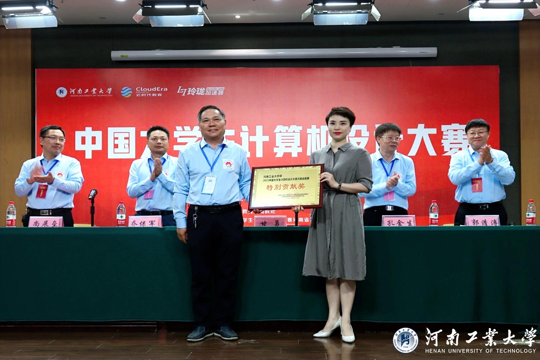 经过一天的激烈角逐,共有53个参赛作品荣获一等奖,101个参赛作品荣获二等奖,210个参赛作品荣获三等奖。23日上午,闭幕式在我校图书馆学术报告厅举行,此次闭幕式恰逢十周年庆,大赛组委会在为获奖队伍逐一颁发证书后,为我校颁发了特别贡献奖,以感谢我校在承办工作中付出的辛苦努力。最后,会议举行计算机设计大赛的交接仪式,明年该项赛事的省赛承办工作由河南大学接棒。