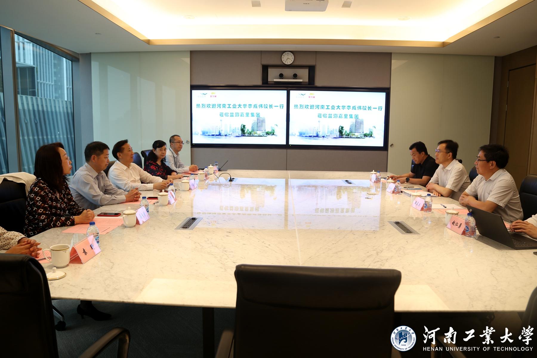 牛余新对李成伟一行表示欢迎,介绍了益海嘉里集团的企业发展、产业布局等基本情况,他表示,河南工业大学与益海嘉里在协同创新、技术攻关、成果转化、人才培养、学生就业等方面有良好的合作传统,希望双方进一步深化合作领域,就“中央厨房”等相关项目更加深入地开展产学研用合作,共同推进校企高质量发展。