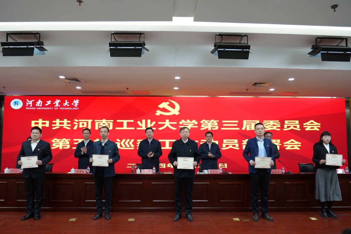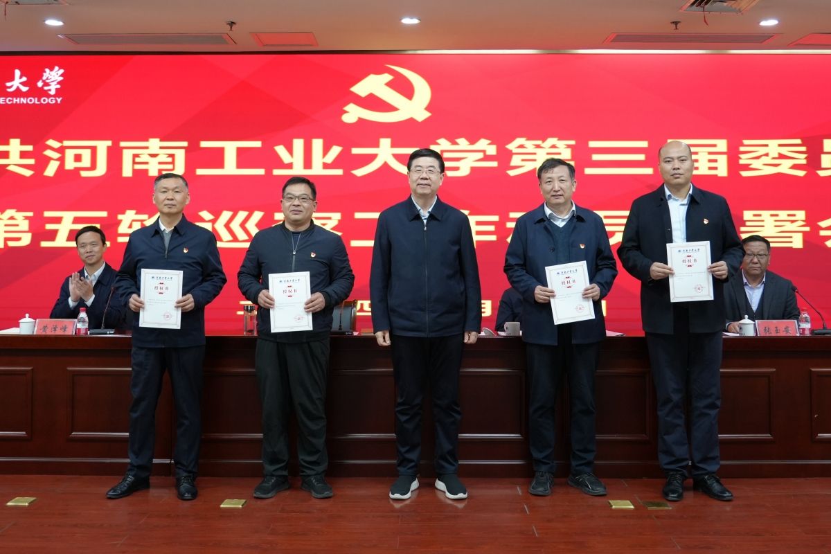 会上,周相寅宣读了《中共河南工业大学第三届委员会第五轮巡察工作方案》和《关于第五轮巡察巡察组授权任职及任务分工的决定》。刘志军向巡察组组长颁发了《授权书》。黄泽峰宣读了《关于表彰第四轮巡察优秀巡察干部的决定》,巡察工作领导小组向优秀巡察干部颁发了荣誉证书。