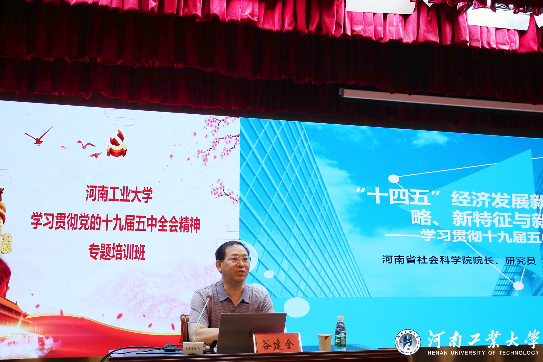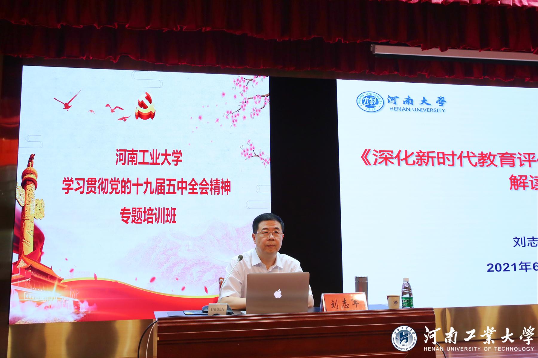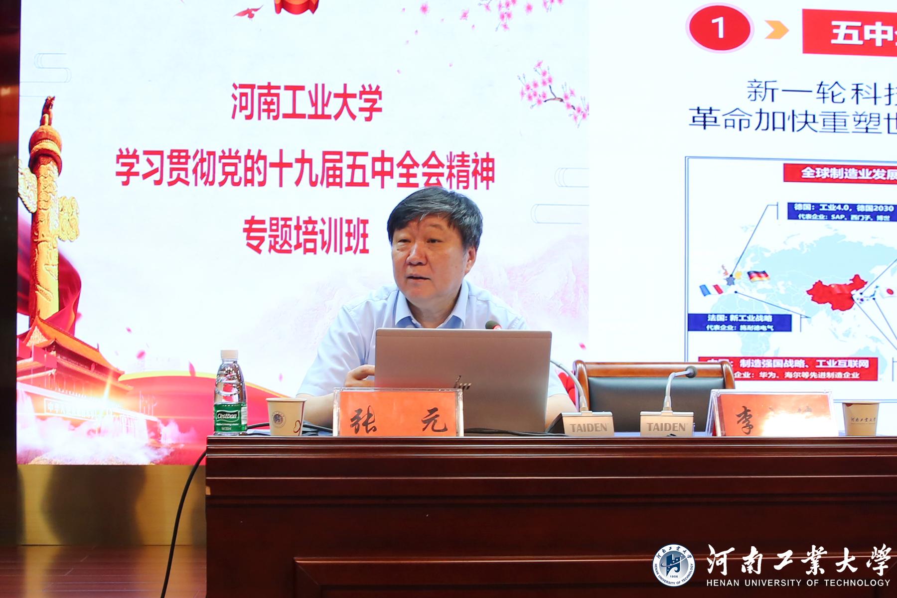 在理论学习环节中,校党委书记张元以《学习贯彻党的十九届五中全会精神 努力打造忠诚干净担当的干部队伍》为题,为全体处级干部上了一堂生动的党课,给全体干部提出了面向新时代,开启新征程,做好高校工作引路人的新要求;河南省社会科学院院长谷建全以《党的十九届五中全会精神解读》为题,全面分析我国社会主要矛盾变化带来的新特征、新要求,阐述高校教育工作者将面临的新机遇和新任务;河南省委党校康来云结合党史学习教育,以《中国共产党在长期奋斗中铸就的伟大精神》为题,鼓励学员从党史中汲取奋进之力,深刻铭记中国共产党百年奋斗的光辉历程,深刻感悟中国共产党始终不渝为人民的初心宗旨;河南大学党委副书记、副校长刘志军以《新时代教育评价改革总体方案解读》为题,对如何做好高校教育评价改革进行深入分析,提出应着力做到政策系统集成、举措破立结合、改革协同推进,构建符合高校发展实际的评价体系。