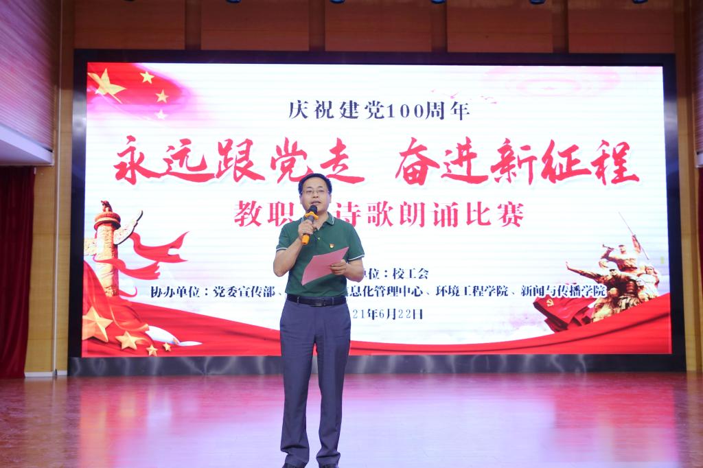 此次“永远跟党走 奋进新征程”诗歌朗诵比赛是我校庆祝中国共产党成立100周年系列主题宣传教育活动的重要组成部分。校工会作为主办单位,精心组织,周密部署,认真做好比赛的各项筹备工作,党委宣传部、校团委、信息化管理中心、环境工程学院、新闻与传播学院等部门作为协办单位也积极配合,为比赛的顺利举办提供了各项保障。