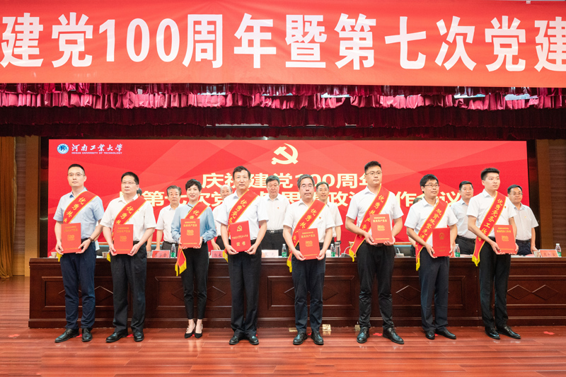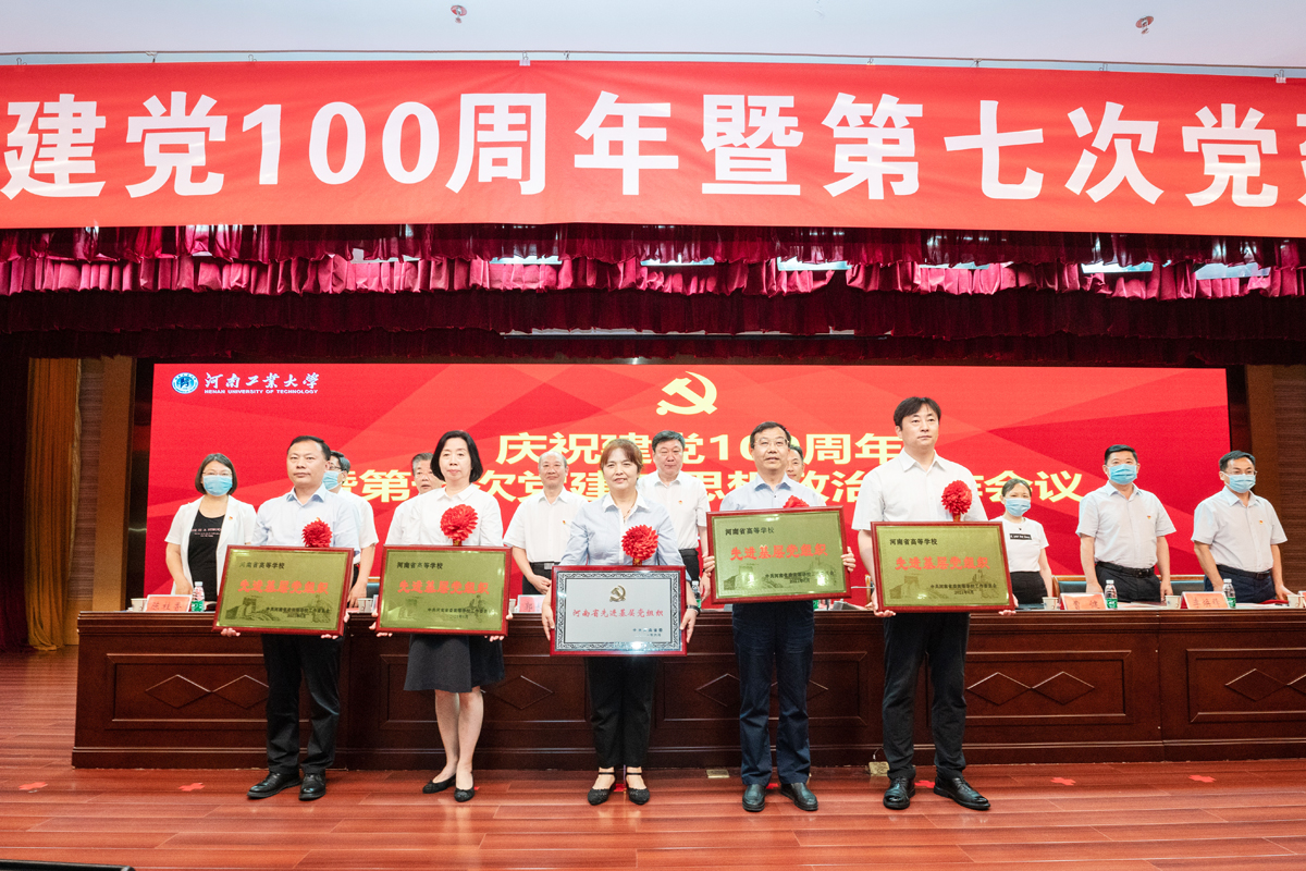 在欢快的乐曲声中,校领导先后为荣获河南省“先进基层党组织”“先进个人”代表,荣获校级“先进基层党委”“基层党支部”代表,荣获“优秀共产党员”“优秀党务工作(优秀思想政治工作)者”教师和学生代表,荣获“脱贫攻坚先进集体”代表,荣获“抗击新冠肺炎疫情先进集体”代表,获评“思想政治工作与校园文化建设优秀品牌”代表颁奖。