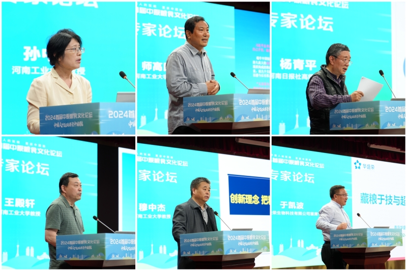 专家论坛环节,来自校河南工业大学的孙中叶教授、师高民教授、王殿轩教授、穆中杰教授分别做了题目为《国人饭碗河南粮的情怀与责任》《中国饭碗纵横谈》《我国粮食储藏技术发展与粮食文化进步》和《粮食法律法规与粮食节约文化》的专题报告,来自河南日报社的杨青平教授和青岛华盛荣生物科技有限公司的于凯波教授分别做了题目为《粮食储备文化与太平盛世》《藏粮于技与超敏蛋白复合酶应用》的精彩分享。与会专家围绕中国饭碗、粮食文化、粮食法律法规、粮食科技等主题向与会人员做了精彩的成果分析,专家们的论坛使与会人员对我国的粮食安全与粮食文化有了更深的认识与思考。