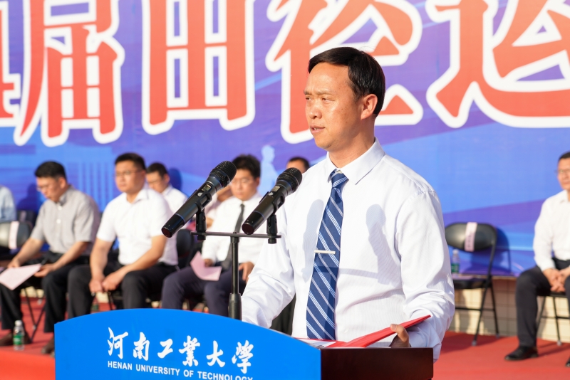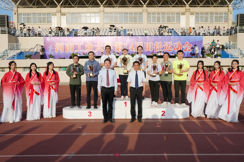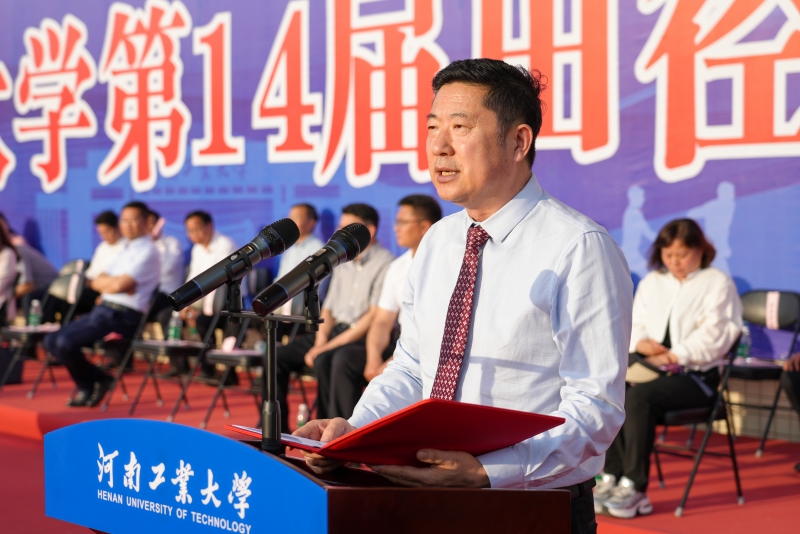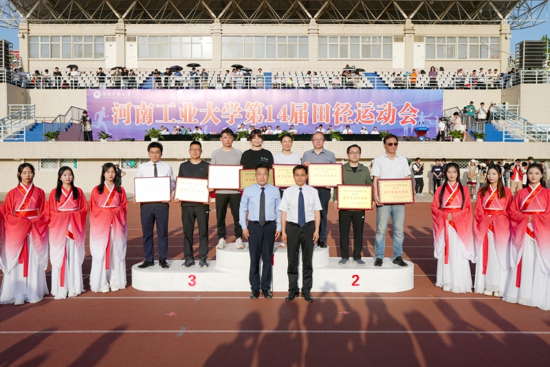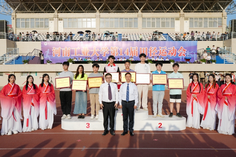 4月26日下午,为期两天的河南工业大学第十四届田径运动会圆满完成各项赛事,胜利落下帷幕。运动会闭幕式在乐鱼online(中国)莲花街校区田径场举行,校领导、各单位主要负责同志、师生员工代表和全体运动员参加了闭幕式。闭幕式由校党委副书记黄泽峰主持。