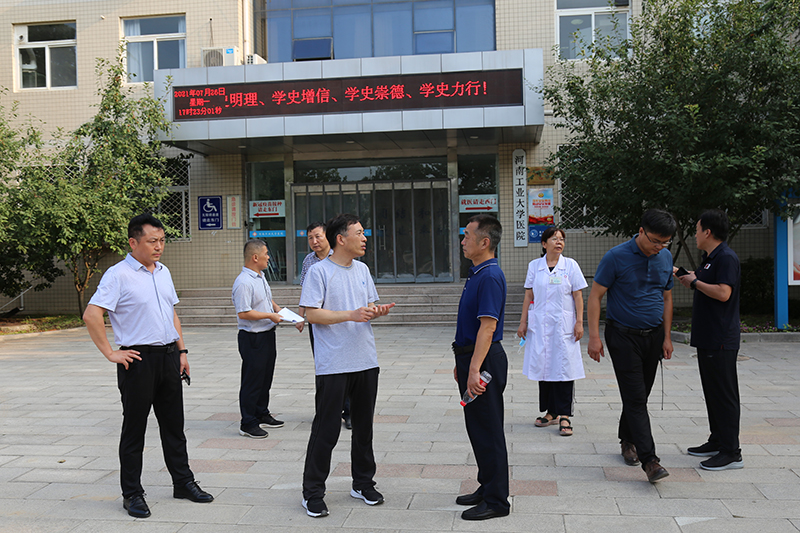 7月26日,省委高校工委组干处处长冯轩友、干部林万成一行2人来校调研督导防汛救灾工作。校长李成伟以及党委办公室、校长办公室、图书馆、后勤服务中心、校医院等部门负责同志陪同调研。
