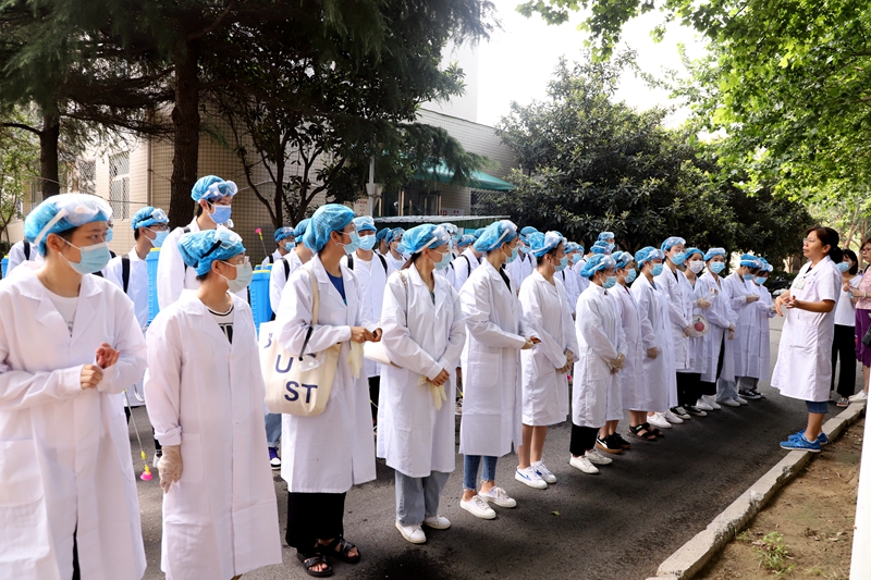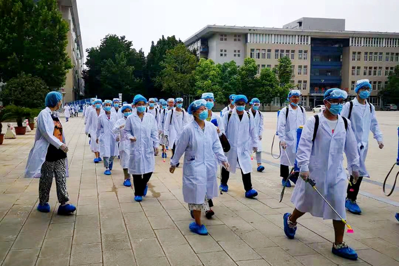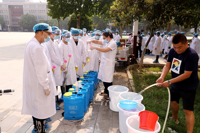 7月25日,突然接到乐鱼online(中国)和机关党委开展校园消杀工作通知后,校医院闻令而动,组织防疫人员迅速集合到位,搬出电动喷雾器40台,拆封、组装、调试、配药,在机关突击队员的帮助下,迅速将40台喷雾器装满消毒液。突击队员们身穿白大衣,佩戴口罩、帽子、护目镜,全副武装,背上药桶开始对校园进行全方位的卫生防疫消杀工作,一直干到下午1点多钟。7月26日、27日、28日,再次对校园公共区域和六号楼、4号楼地下室进行了全面消杀。在消杀工作中,校医院防疫人员不怕苦、不怕累,冲锋在前,圆满完成了乐鱼online(中国)前一阶段的防疫消杀工作。截止7月28日,校医院投入消毒消杀应急人员51人次,累计使用84消毒液10万多毫升。