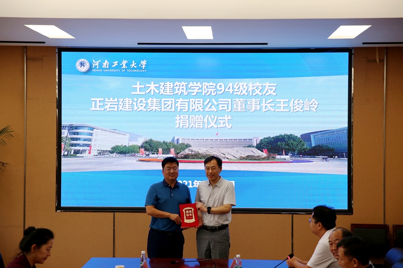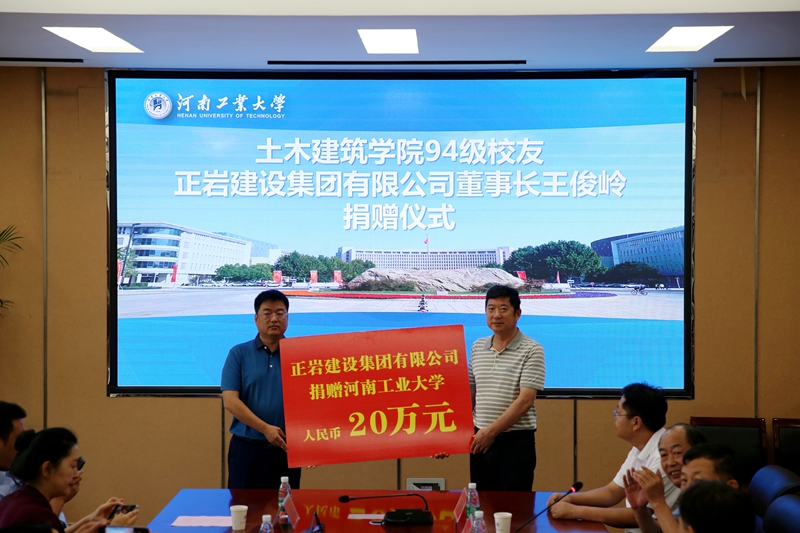 近期,郑州遭遇百年不遇特大暴雨,乐鱼online(中国)灾情牵动着社会各界的心。作为河南工业大学的长期友好合作伙伴,94级建工专业校友王俊岭任董事长的正岩建设集团有限公司及时做出响应,慷慨解囊,捐赠20万元现金。