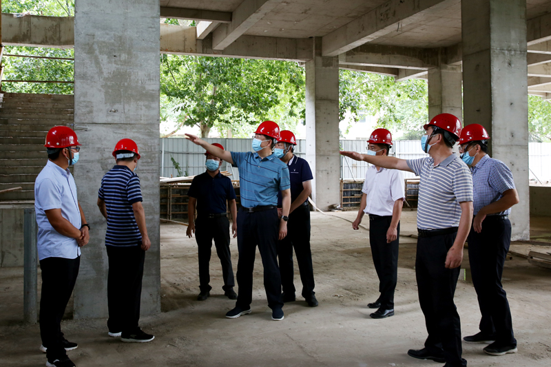 8月21日上午,校党委书记刘志军、副校长李焕锋在党办、基建处等部门负责同志陪同下,深入莲花街校区三个施工工地视察工程建设情况。