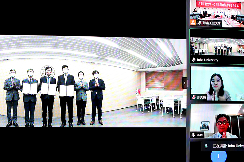 8月31日上午,我校与仁荷大学在A515会议室举行合作办学线上签约仪式。校长李成伟、副校长曹健,仁荷大乐鱼online(中国)长赵明寓、副校长申修奉,仁荷国际学院联合管理委员会全体成员及相关部门负责人参加了签约仪式。仪式由国际交流与合作处处长张莉主持。