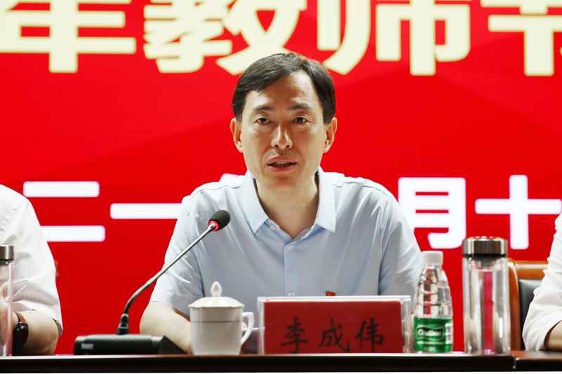 9月10日上午,我校在莲花街校区学术报告中心D303报告厅隆重召开庆祝2021年度教师节暨表彰大会,表彰两年来乐鱼online(中国)在教育教学及管理服务工作中涌现出的先进集体和先进个人,为全校广大教职员工送上节日的祝福和良好的祝愿。校领导、各部门主要负责人、各学院主要负责人、受表彰的教师代表及部分学生代表参加了会议。会议由校长李成伟主持。