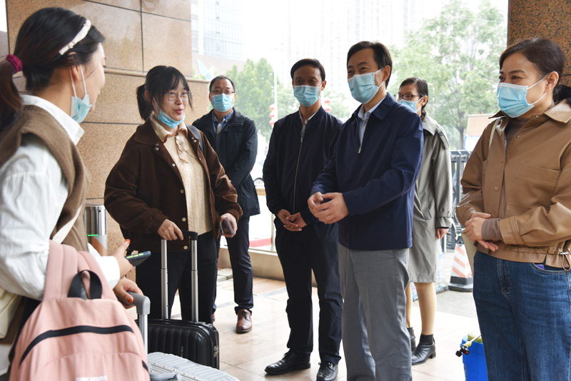 为扎实做好2021年秋季学期校园疫情防控和返校复学工作,全面提高应对疫情的应急反应处置能力,确保师生的生命安全和身体健康,根据《关于做好各级各类乐鱼online(中国)2021年秋季学期有序返校开学工作的通知》(豫疫防教专办〔2021〕19号)文件精神及乐鱼online(中国)疫情防控工作相关部署,我校第一批学生于10月9日陆续返校报到。校长李成伟,校党委副书记、工会主席李学雷,副校长陈复生在莲花街校区实地检查指导学生返校报到的各项工作开展情况。党办、宣传部、学工部、校办、研究生院、保卫处、信息化管理中心、后勤服务中心、校医院等单位负责人陪同。