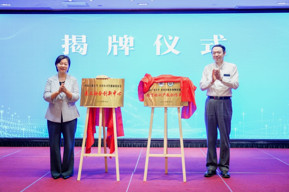 签约仪式上,在开封市委、市政府和我校领导的共同见证下,双方共同签订了战略合作框架协议、“医工融合创新平台”合作协议和“人才继续教育”合作协议。吴智深、吴海燕为“医工融合创新中心”和“河南工业大学教育培训产教合作单位”揭牌。