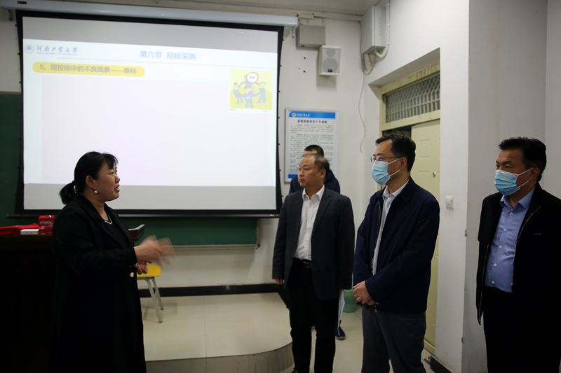 为保障线下复课顺利进行,10月9日,校领导曹健、李焕锋、陈桂香在教务处、实验室管理处、信息化管理中心、后勤服务中心等部门负责人的陪同下,深入3号、4号教学楼和工程训练中心,充分了解教学环境及教学设备保障情况。校领导对教学准备工作给予肯定,并要求各相关部门要从严从细抓好疫情防控和教学准备工作,加强设备安全管理和维护,保障教学工作平稳有序运行。
